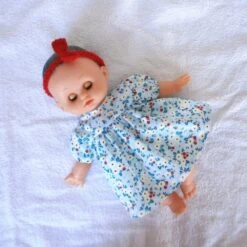Habits Poupon Petitcollin 28 Cm – Robe Bleue à Fleurs Rouges