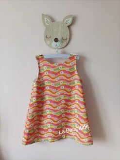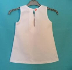 Robe Trapèze Ou Robe -tunique , Blanche, Pour Fillette, Avec Grosse Fleur En Appliqué Devant.