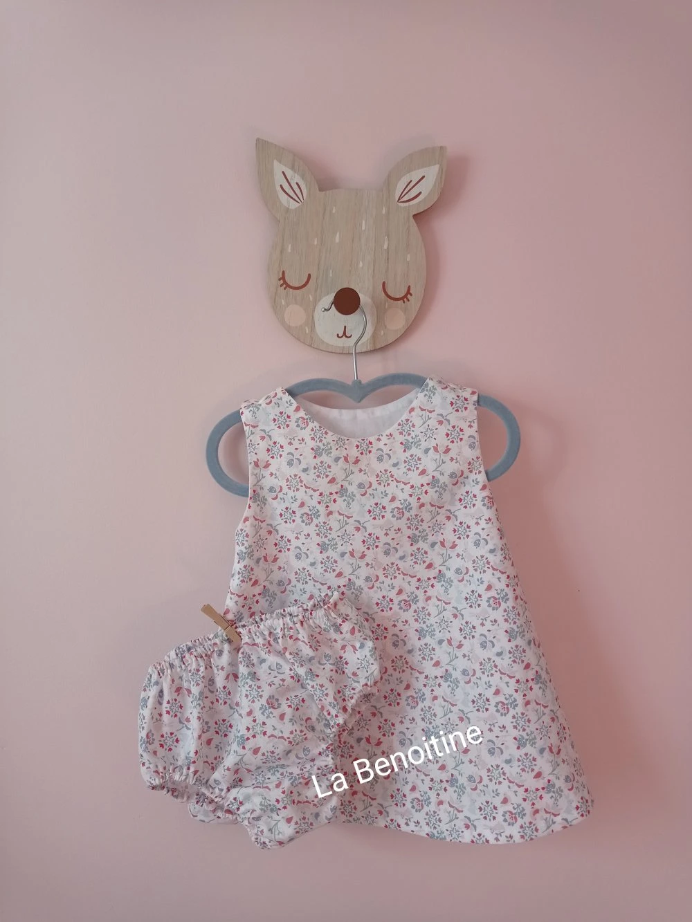 J’ai confectionné cet ensemble robe trapèze et culotte bouffante en 18 mois.