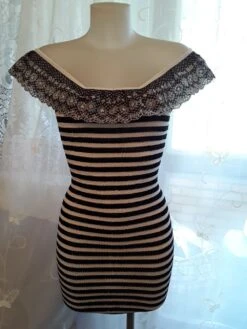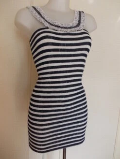 -robe D’étè Moulante Mi Longue En Jersey Extensible Blanc-marine Taille 36/38/40/42, Longueur 82 Cm.