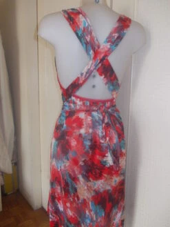 -robe Bustier Smokée Mi Longue En Mousseline Couleurs Dégradés Taille 38/40/42 Longueur 105 Cm.