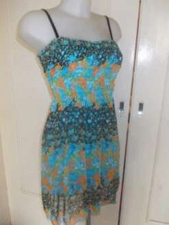 Petite Robe D’étè Smokée Mi Longue En Mousseline Fleuri Multicolore Taille 36/38; Longueur 88 Cm.