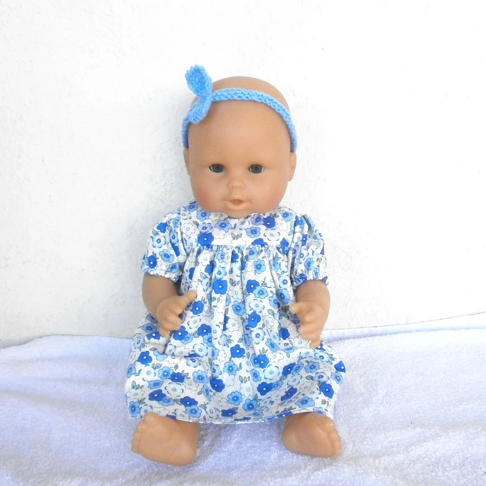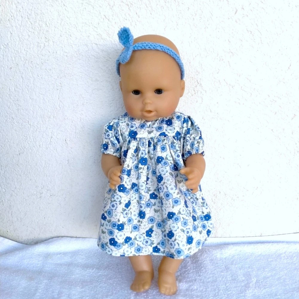 Robe fleurs bleues pour poupon Corolle de 36 cm (corps vinyle)