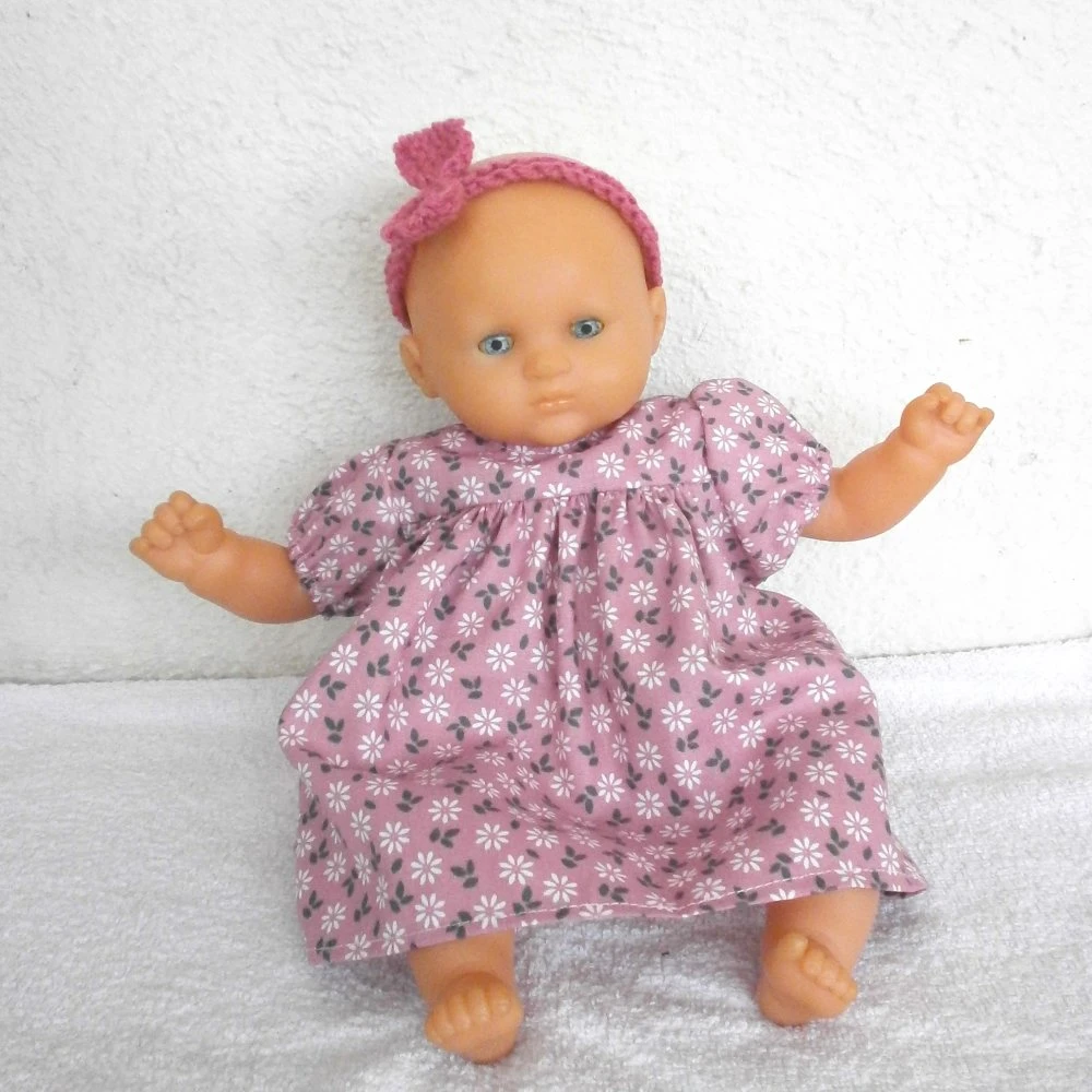 Robe pour poupon de 30 cm au corps souple comme Bébé Calin ou Bébé Bain de Corolle. L’ensemble comprend :