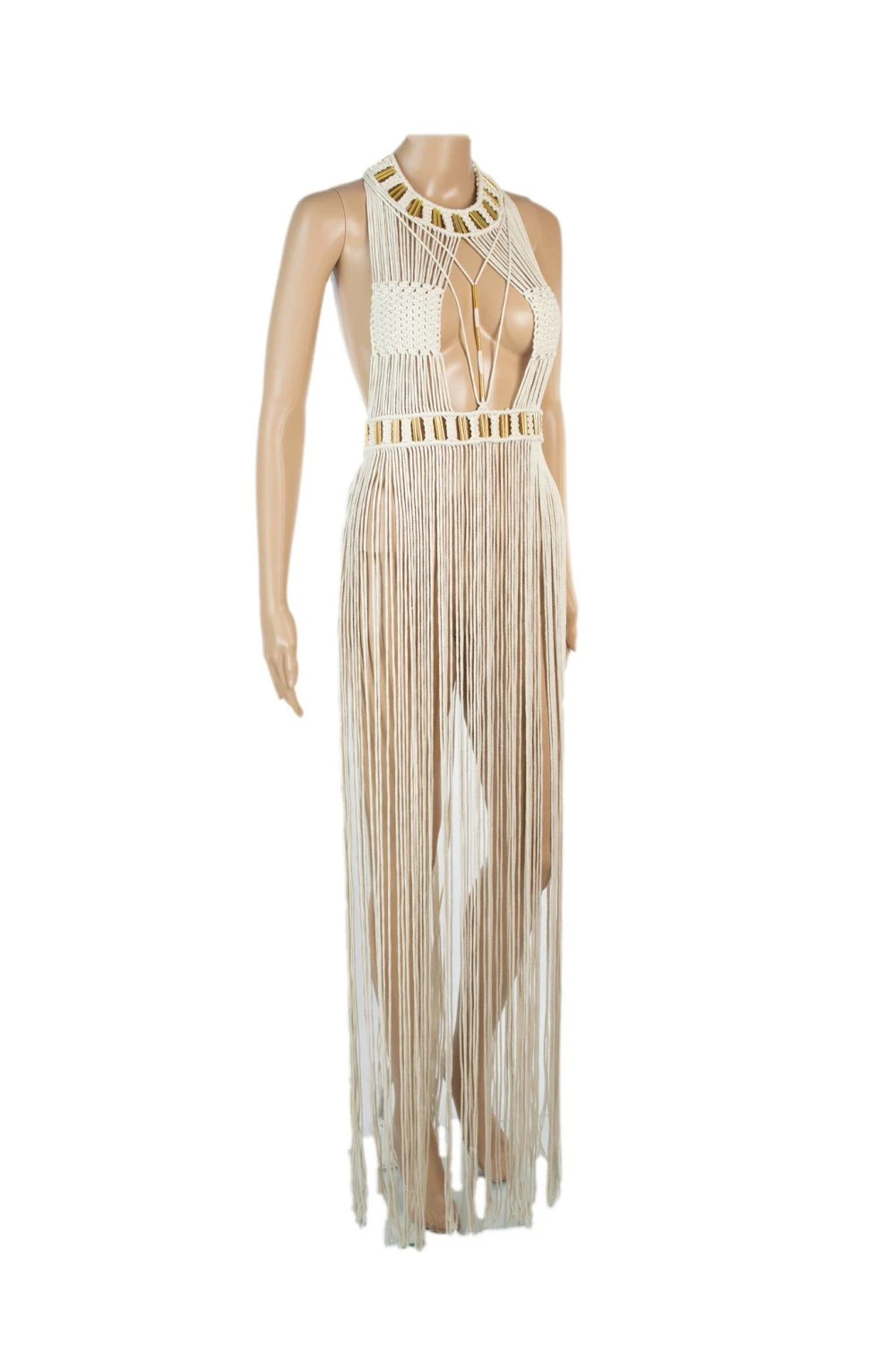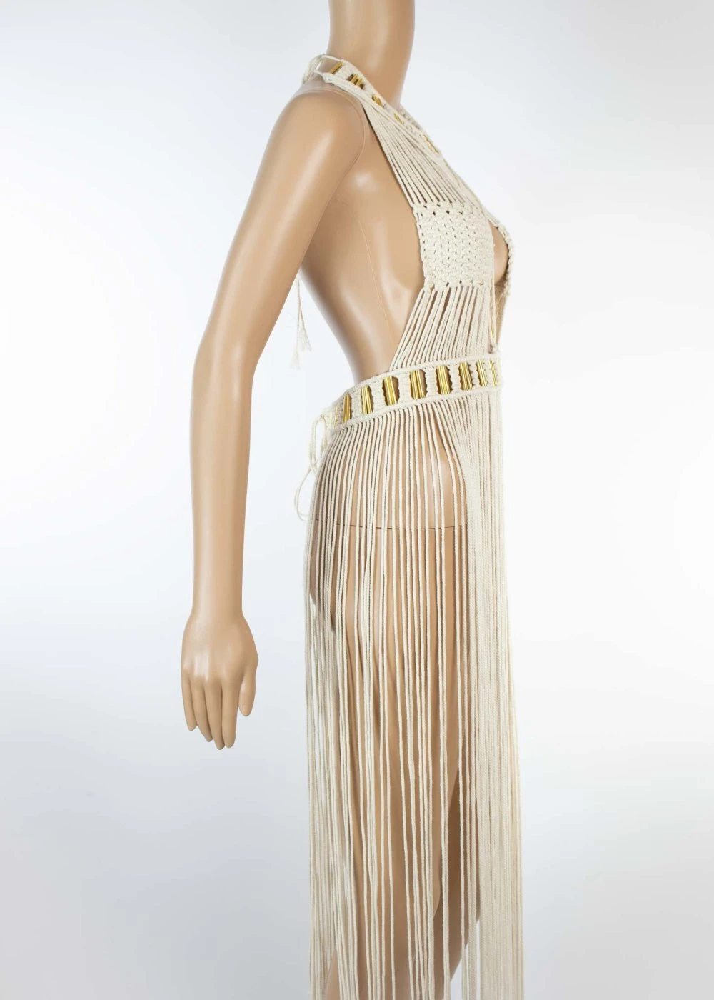 Designed to adapt to modern lifestyles, this dress made of braided cotton threads, can be worn in many ways. Natural, you can wear it over a swimsuit or lingerie to offer you the perfect festival outfit !
