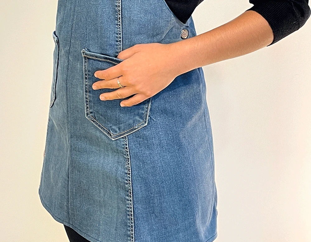 Recycler un jean est à la fois clef sur le plan écologique mais aussi économique. Cette petite robe salopette se porte facilement, tous les jours, à la ville ou à la campagne, été comme hiver.