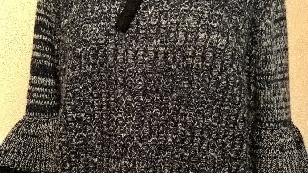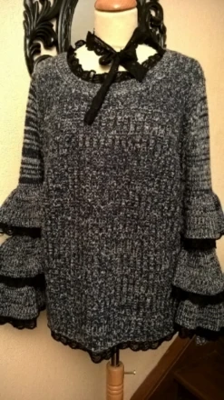 Long pull tunique, Robe courte, en cachemire et viscose couleur bleu chiné, dentelle noire