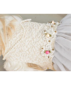 Robe Ivoire Avec Tulle Pailleté & Fleurs Pour Chien Et Chat