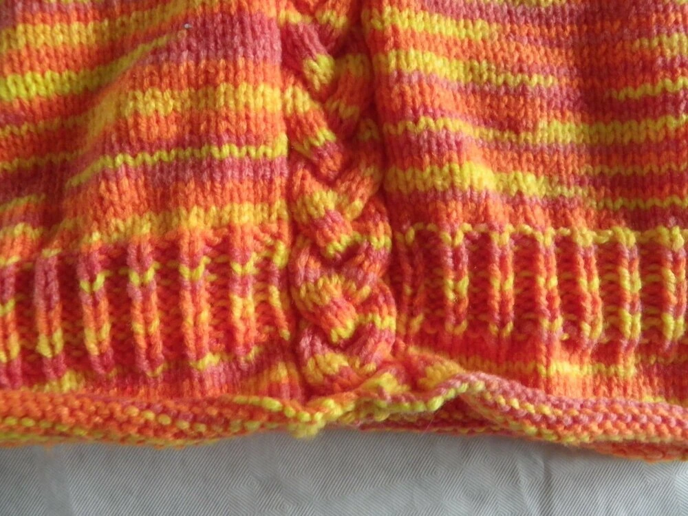 – Fait- main au point de jersey endroit et une torsade sur le devant