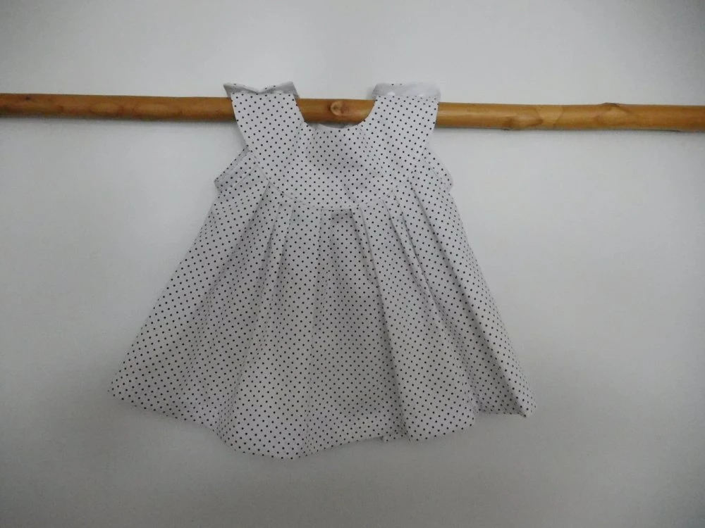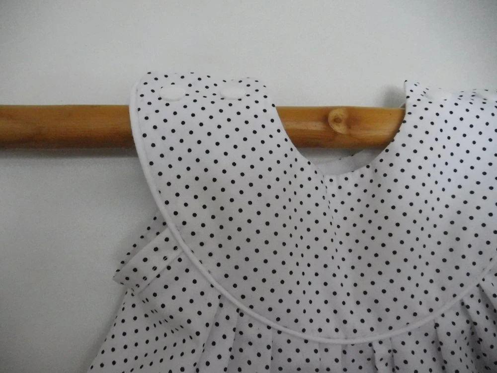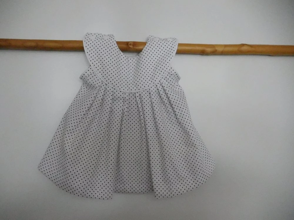Robe bébé en coton imprimé de petits points noirs sur fond blanc