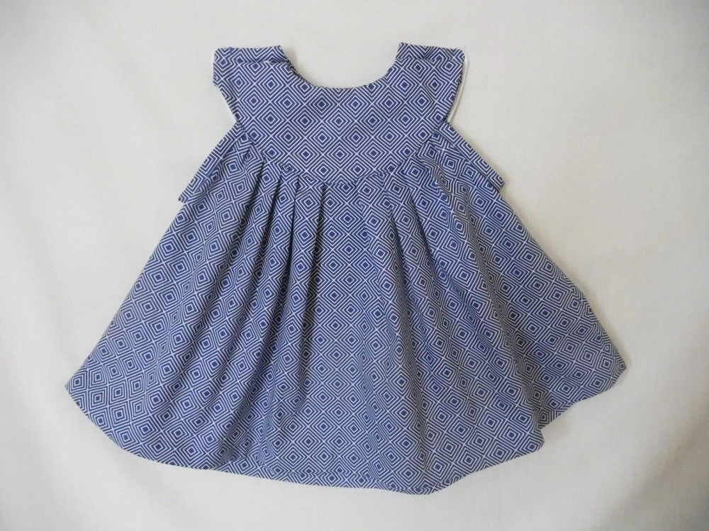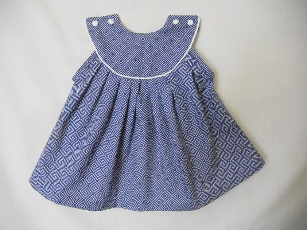 Robe bébé en coton imprimé de motifs géométriques blancs sur fond bleu marine