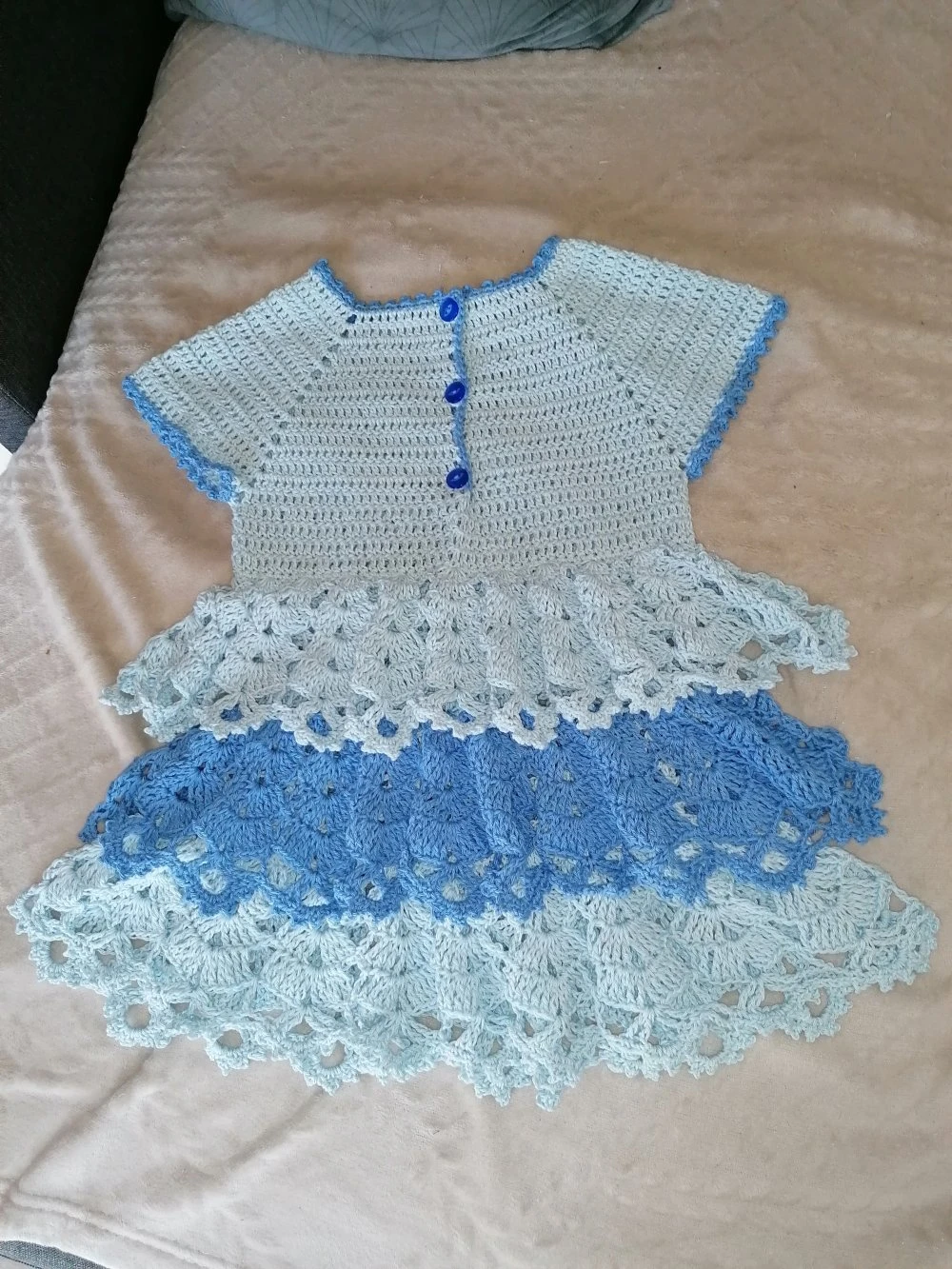 Petite robe chic a volants, crocheté main dans un joli point de dentelle