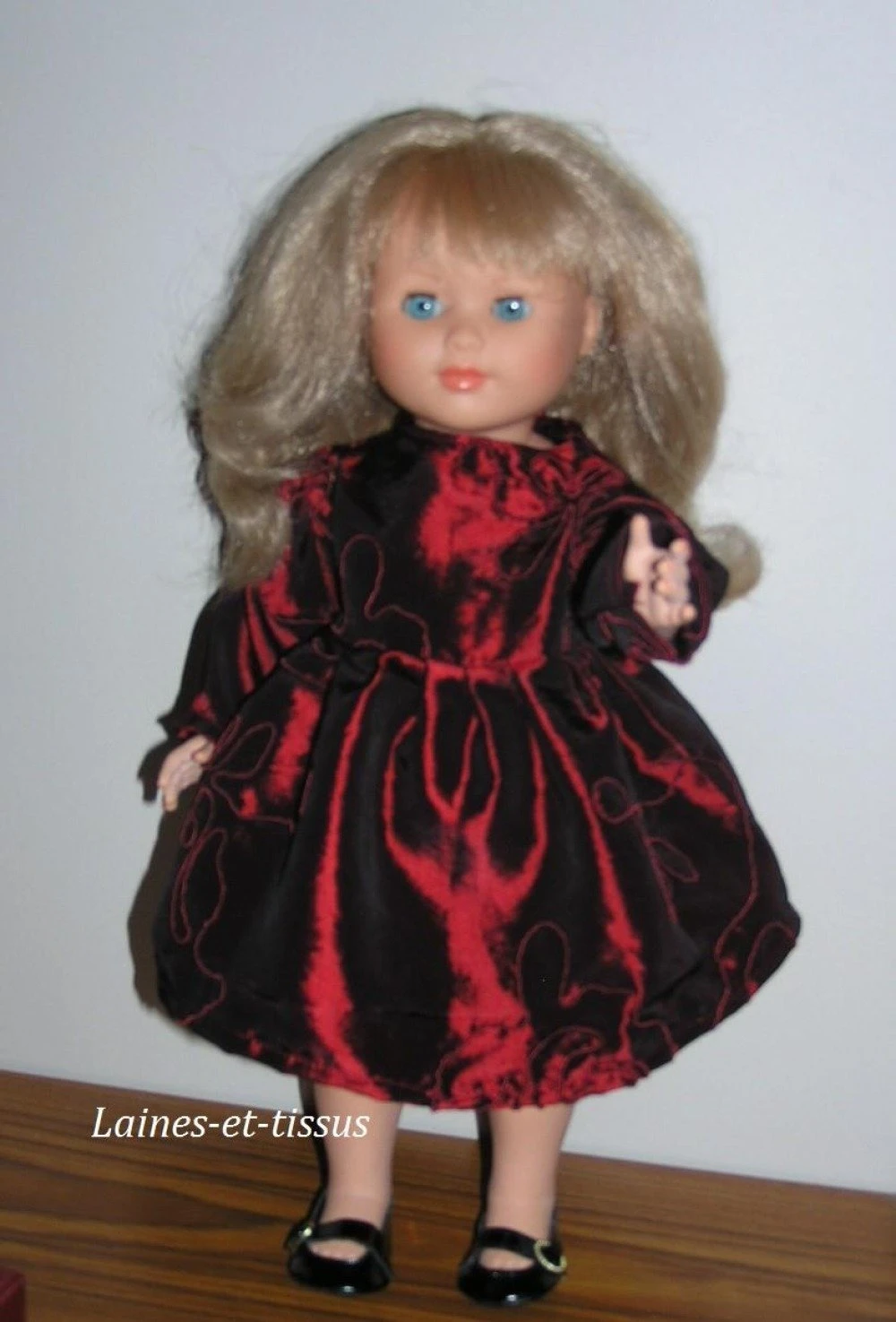 Robe brodée pour poupée de 40 cm type Modes et Travaux, fermée au dos par pression