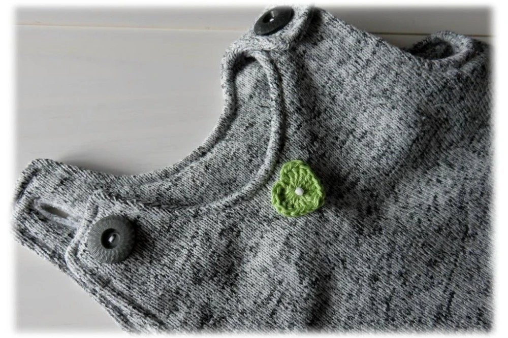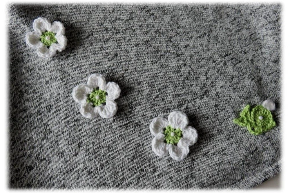 Elle est agrémentée de jolies fleurs, d’un petit cœur et d’un lapin crochetés et perlés.