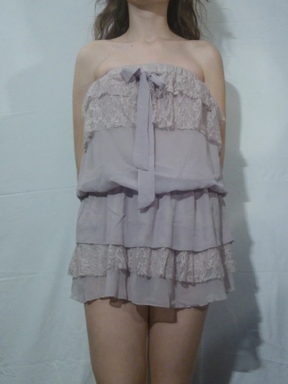 Plusieurs niveaux de volants en dentelle à la poitrine et en bas