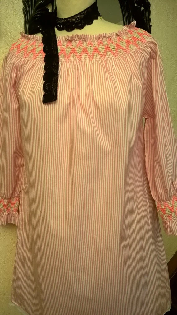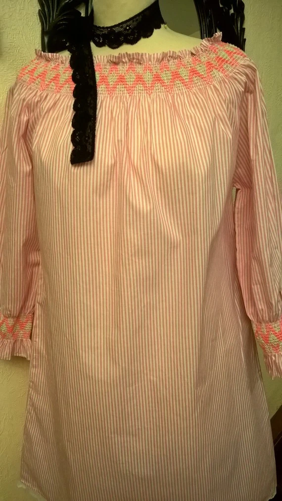 Le col avec plusieurs rangés d’élastiques et brodés en forme zig zag
