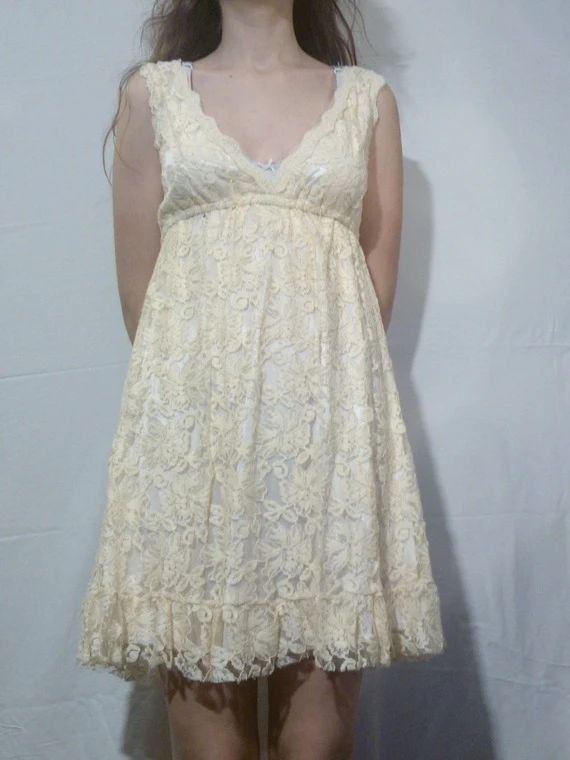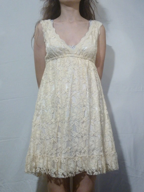 Robe courte en dentelle couleur jaune