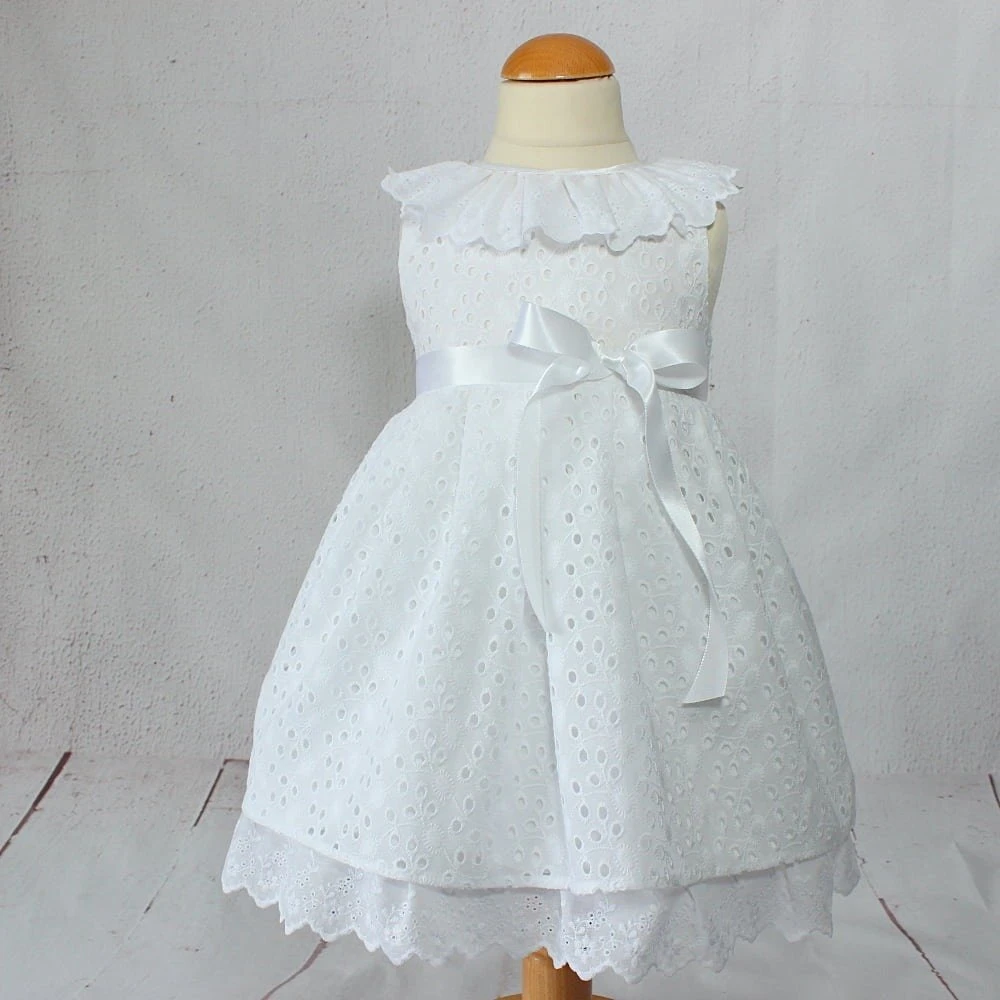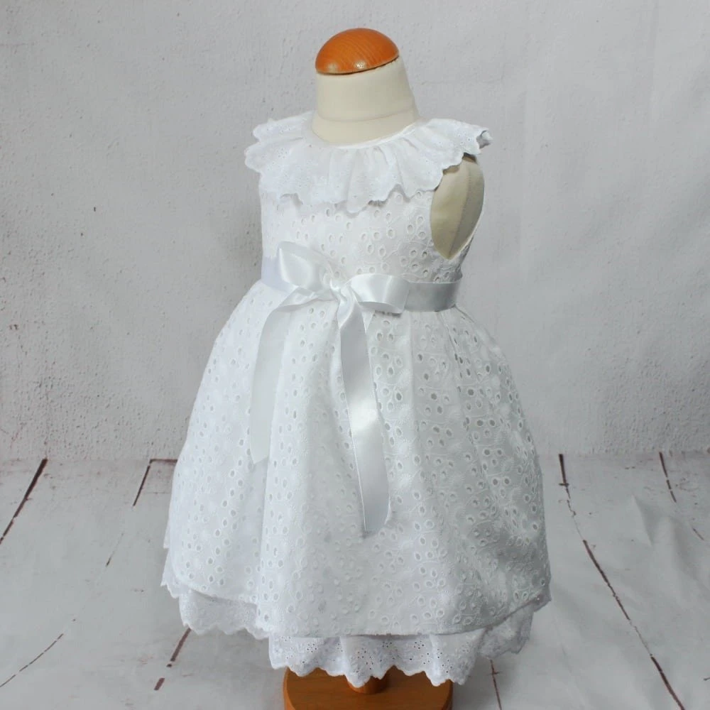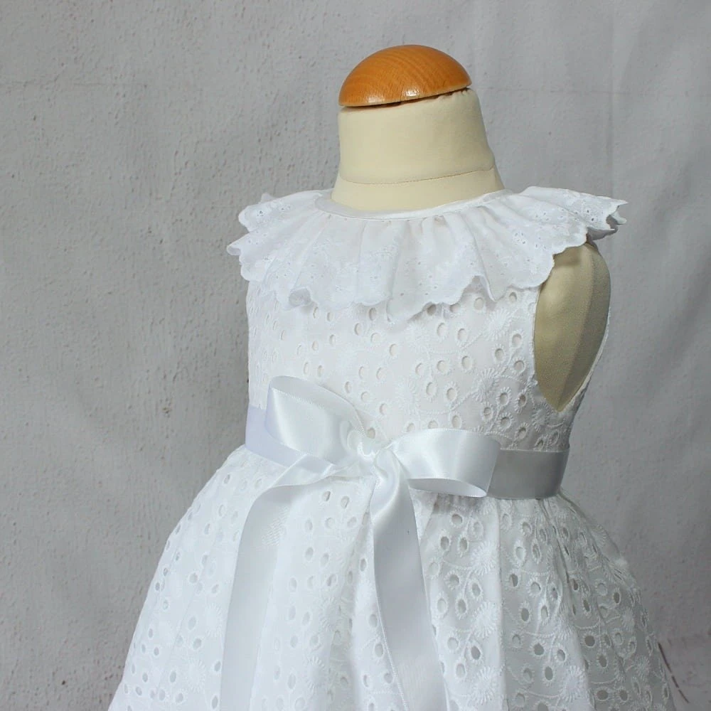 Magnifique robe de baptême en broderie anglaisepour petite fille. Tenue de cérémonie pour bébé.