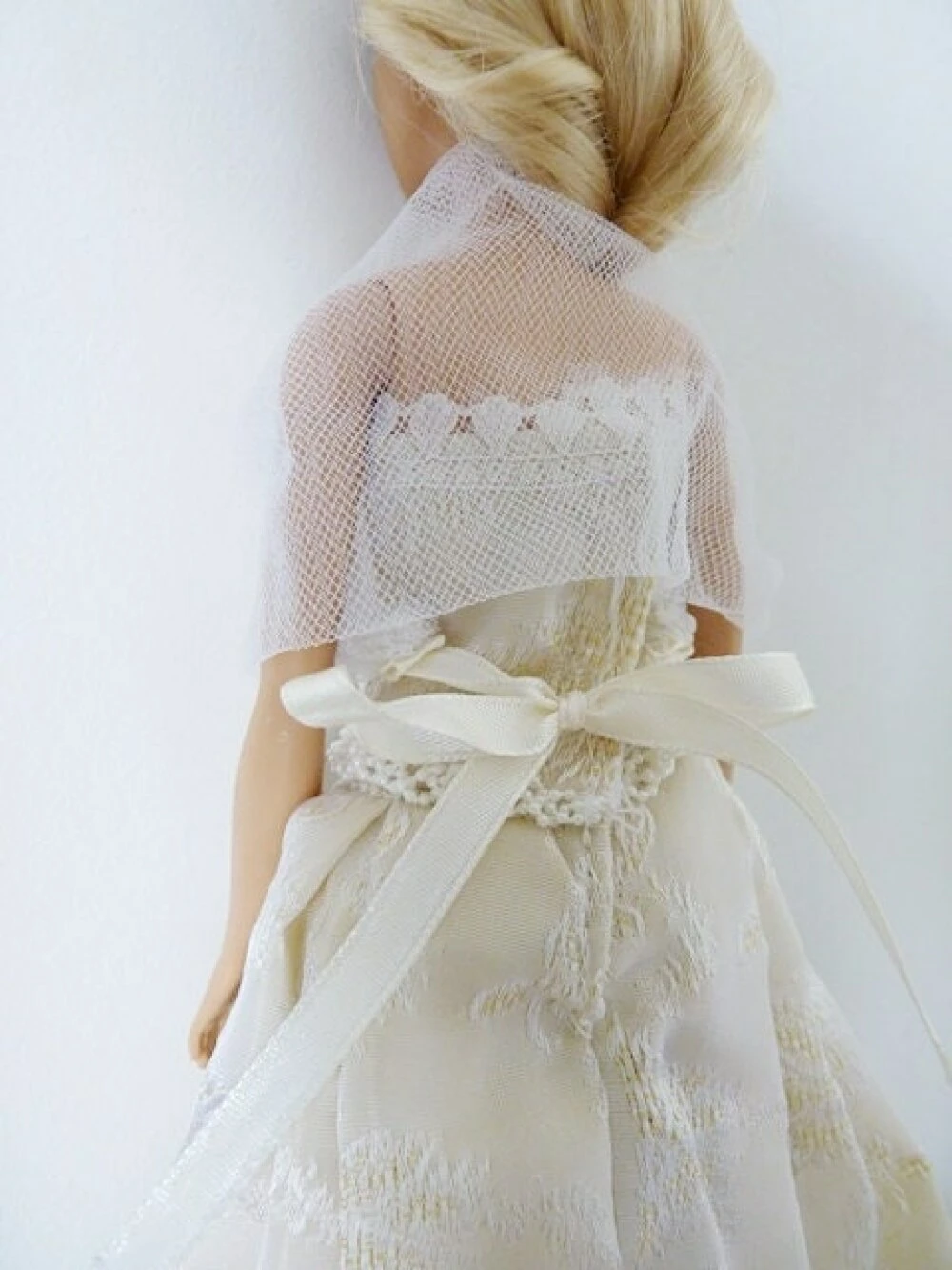 Un voile pouvant servir de boléro est assorti à la robe. (Il se ferme par un ruban)