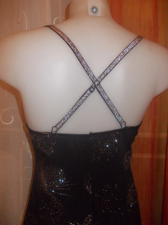 Brillez avec cette Robe bijoux de soirée ou réveillon courte en jersey-lycra noir a motifs brillant.