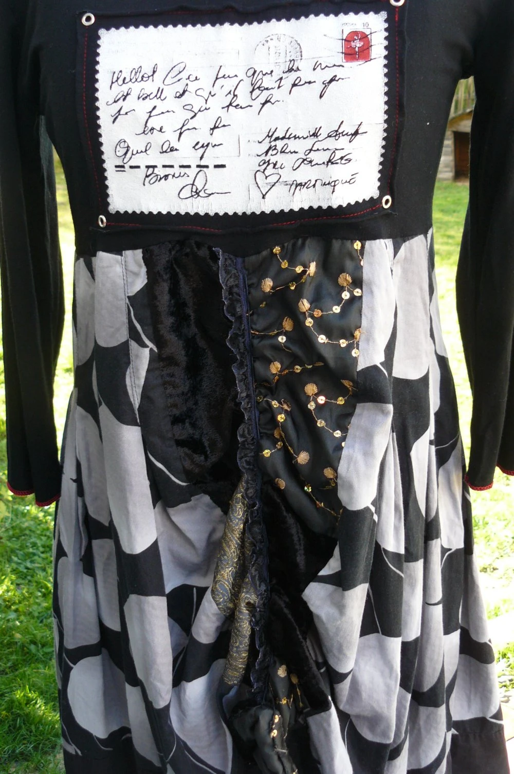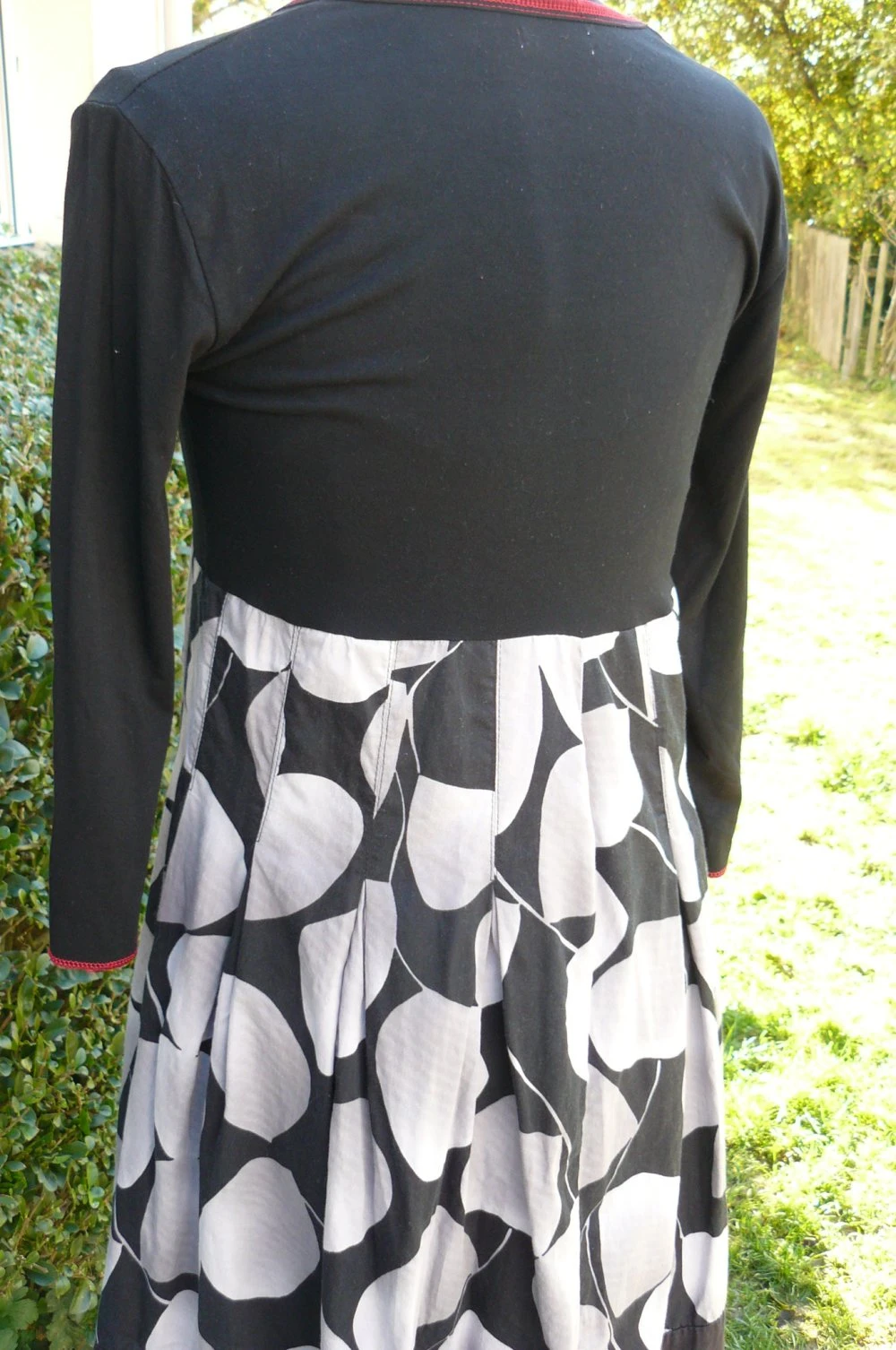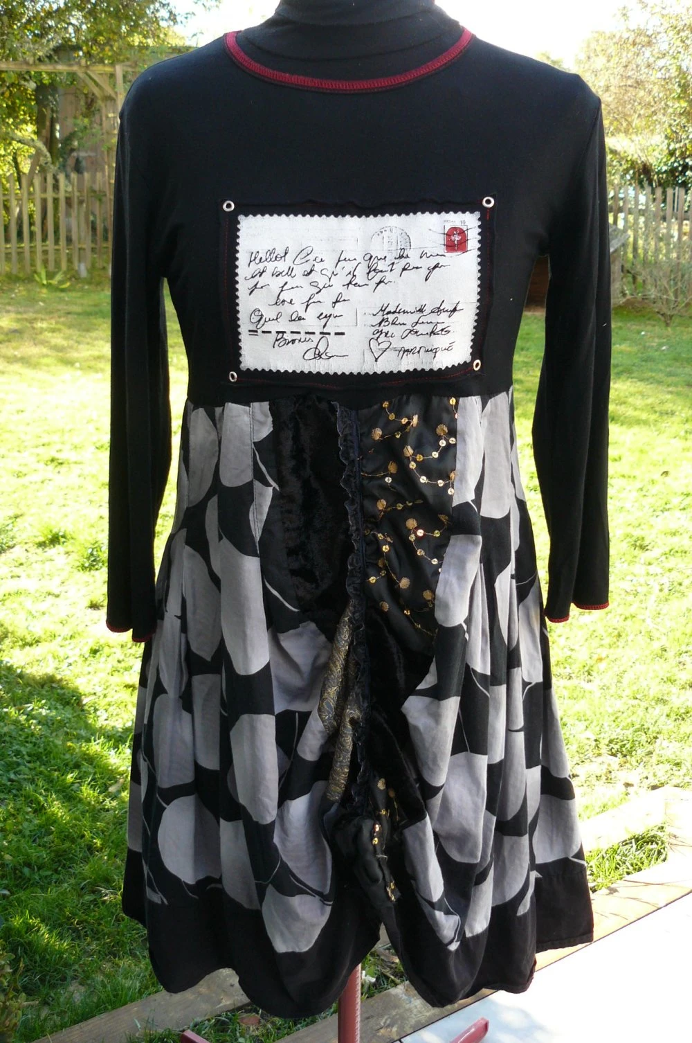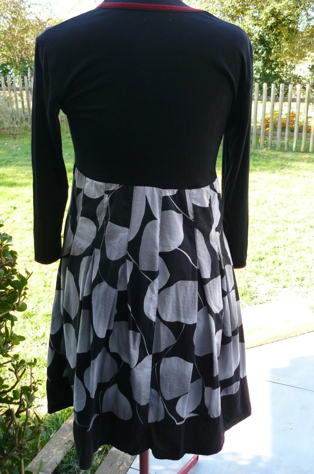 Robe réalisée à partir d’un tee-shirt, une écharpe et une jupe associées.