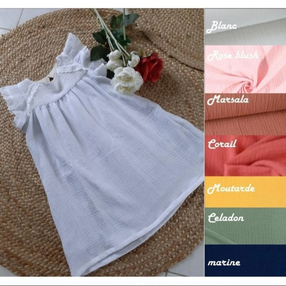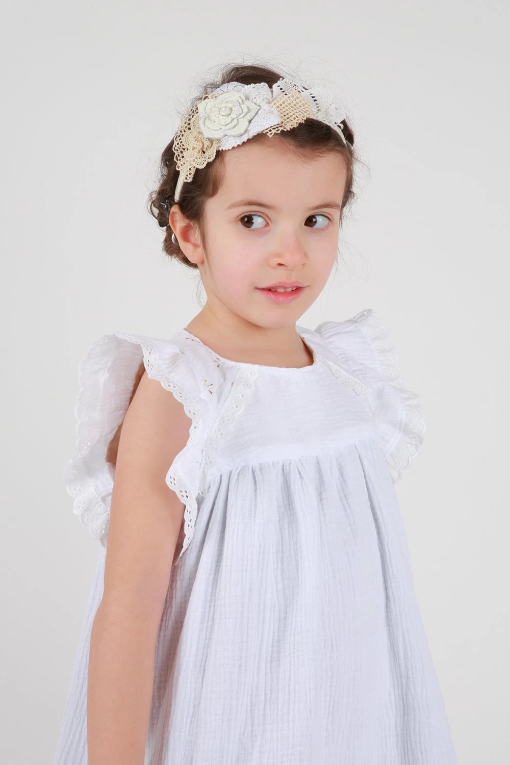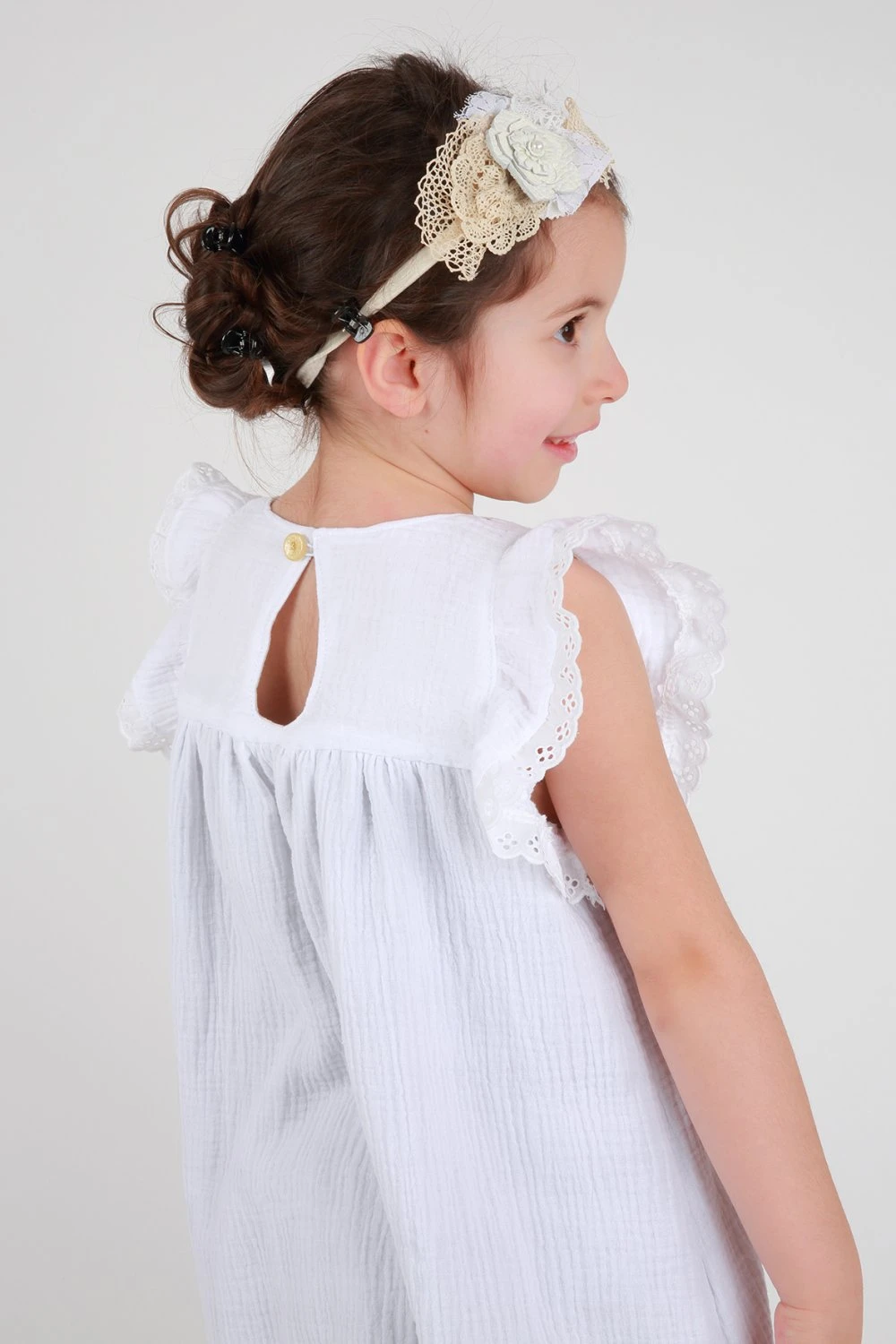 Cette adorable robe blanc pure en gaze de coton est un modèle chic et élégant pour vos petites filles.