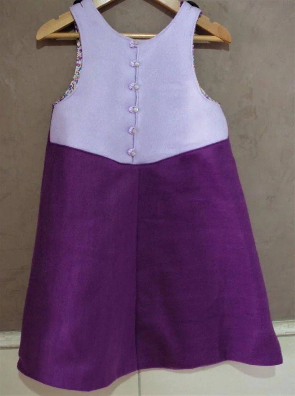 Robe entièrement confectionnée mains, forme trapèze et manches chasubles.