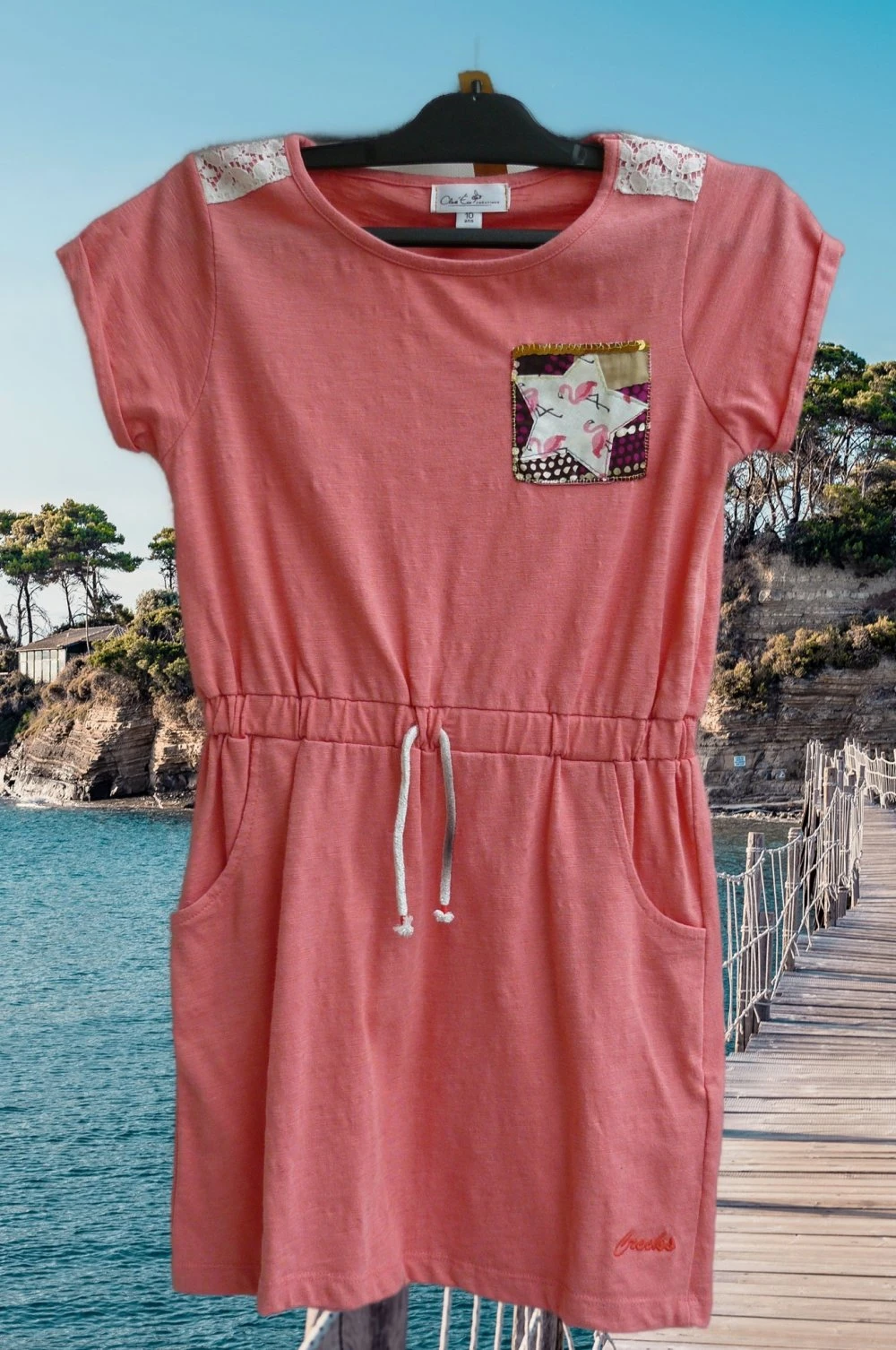 Robe élastiquée à la taille, et avec 2 poches sur les côtés.
