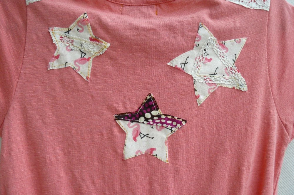Sur le dos, j’ai cousu 3 étoiles que j’avais travaillé préalablement.