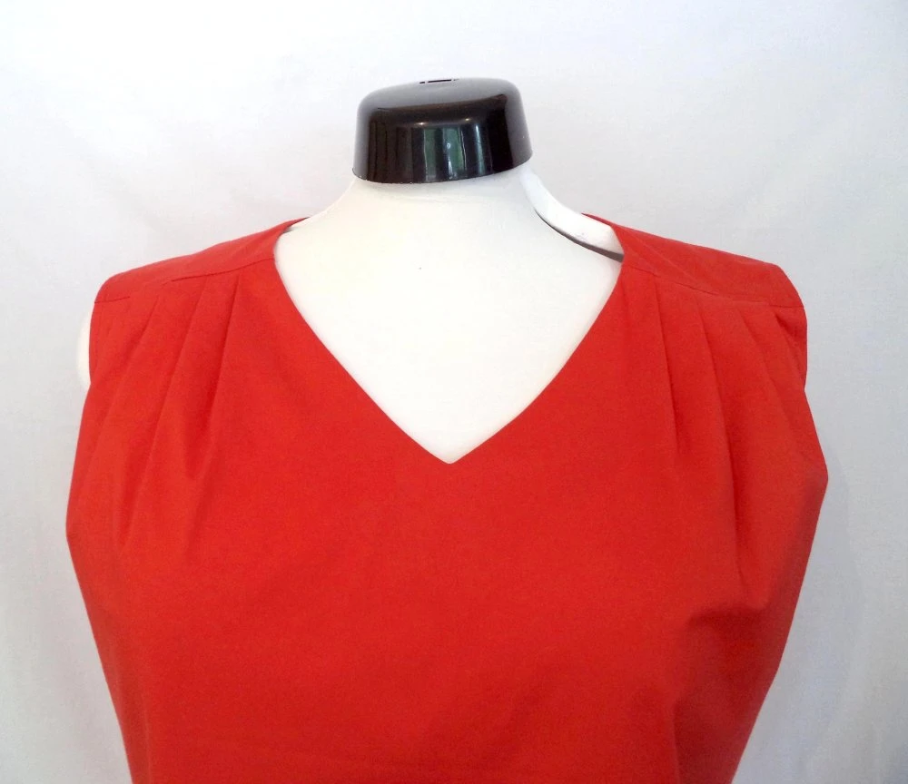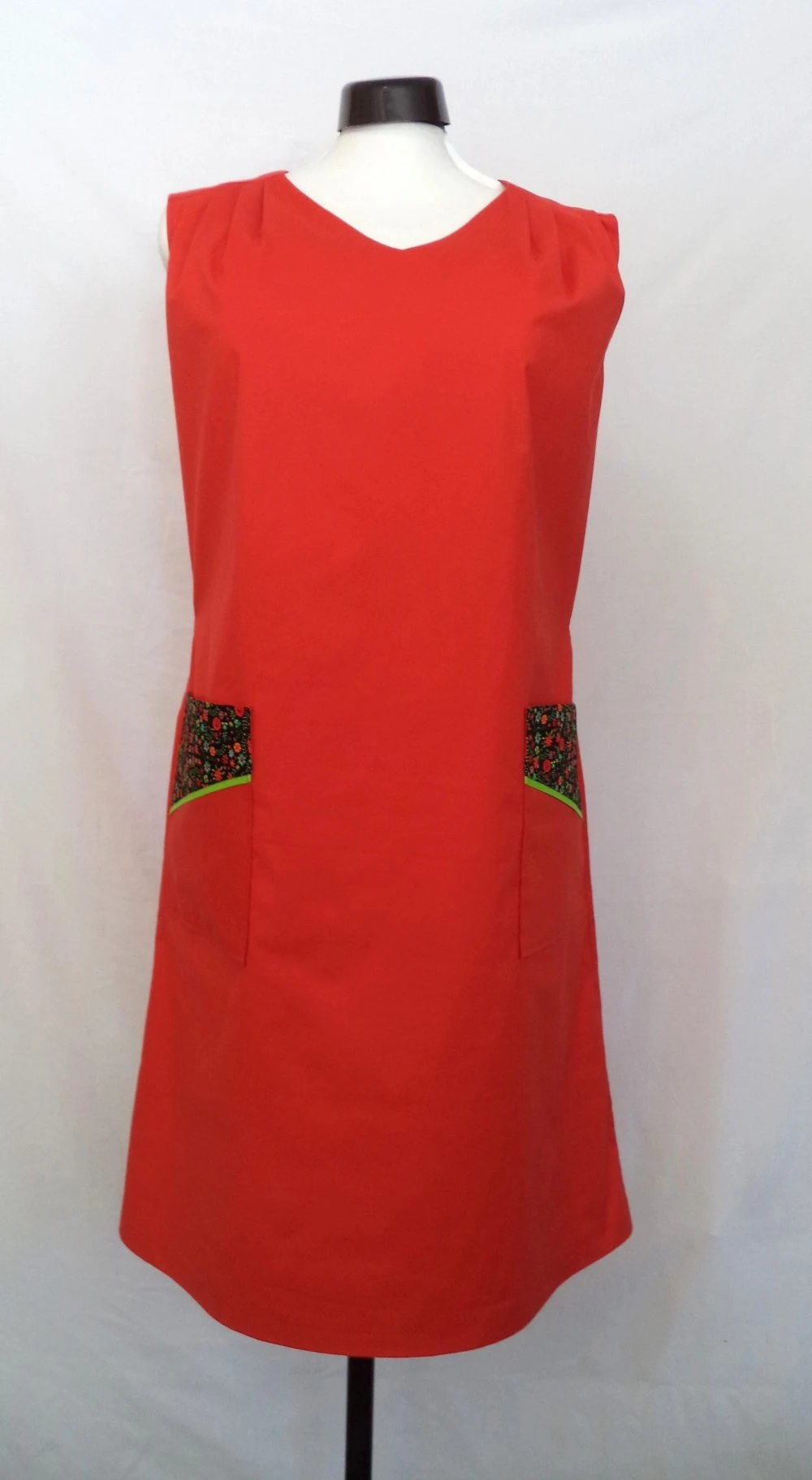 Robe légèrement évasée,réalisée en popeline unie coloris rouge orangé.