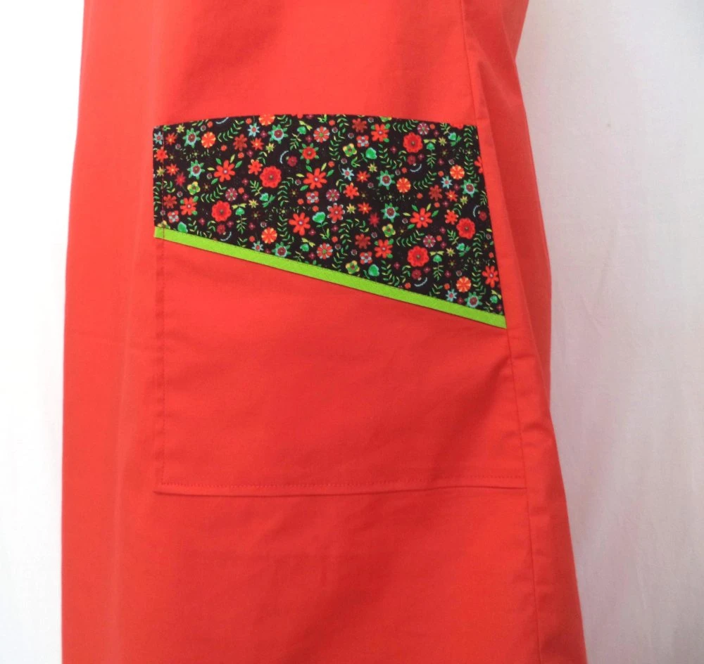 Deux grandes poches plaquées avec revers en tissu fleuri assorti,pour le côté pratique.