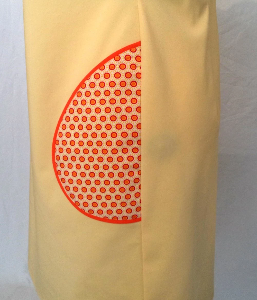 Jolie petite robe pour l’été, de forme droite, légèrement évasée, semi-ajustée,réalisée en coton extensible ( coton et élasthanne) de belle qualité et de bonne tenue.