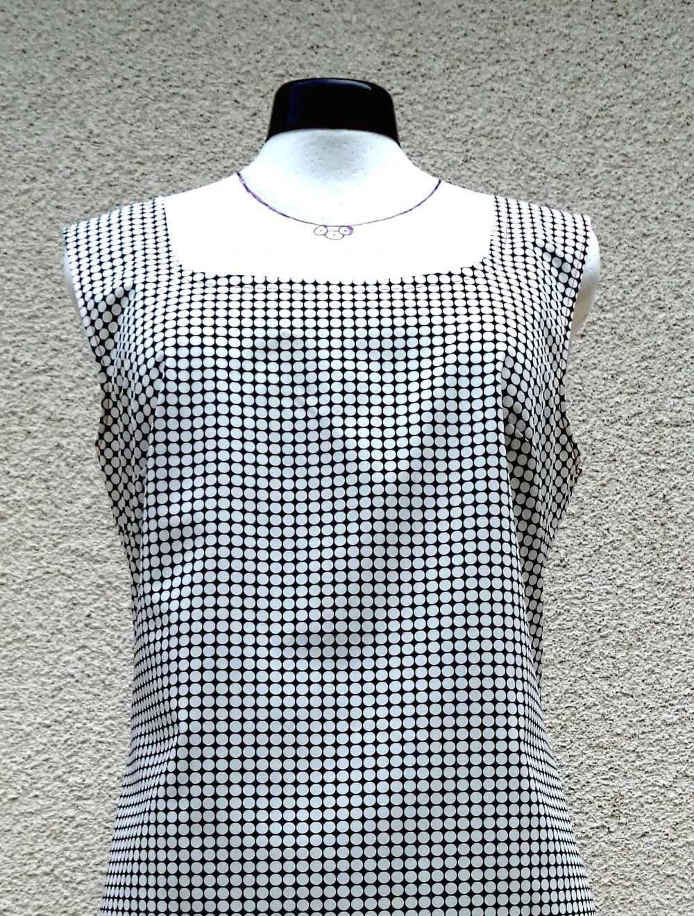 Forme évasée,très élégante, qui donne de l’aisance, tissu en coton de très belle qualité,entretien facile ( lavage à 30°).