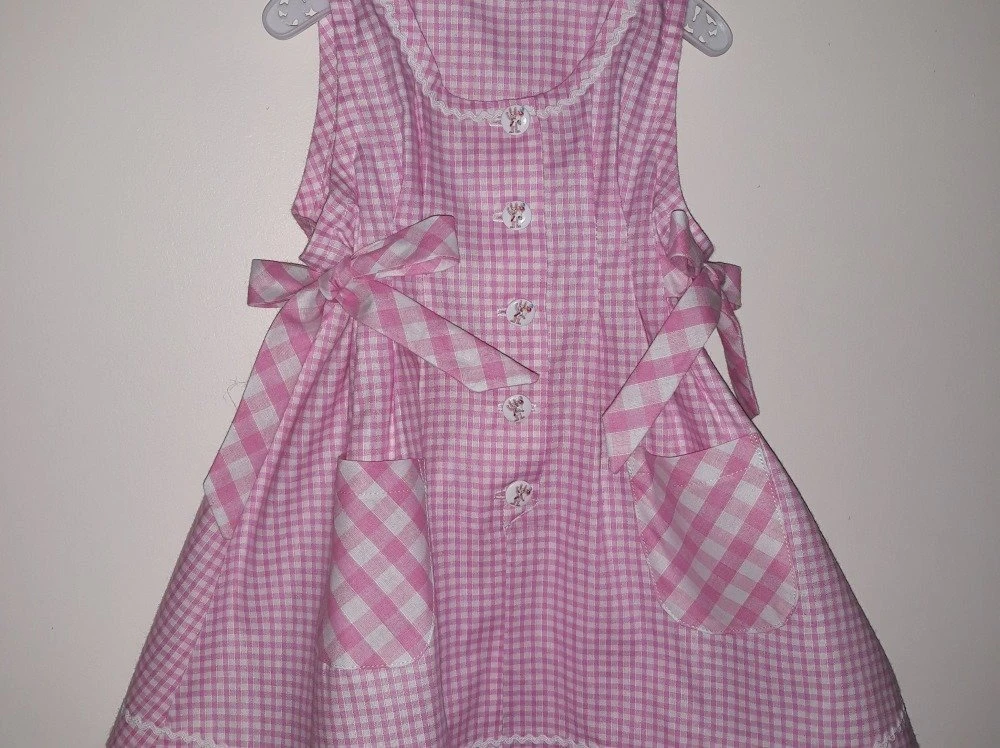 robe fillette 12 mois en pur coton zéphir rose et blanc petits et grands carreaux