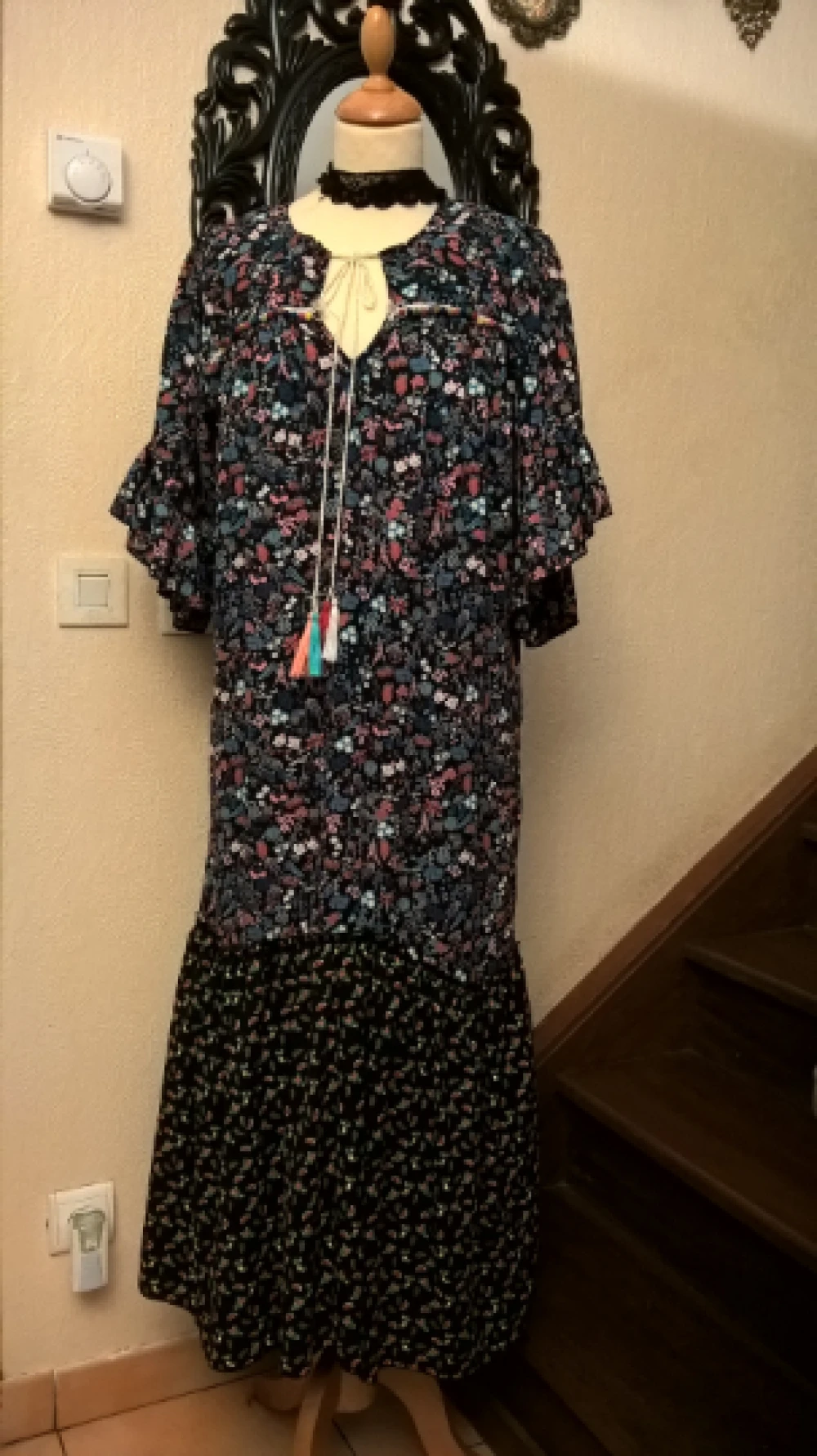Col ronde légèrement dégagé ferme par un cordon de coton blanc