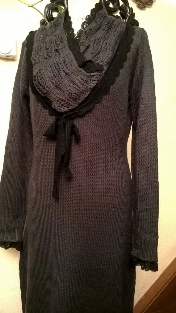 Un galon de dentelle noire qui fait le tour du dos et un nœud devant
