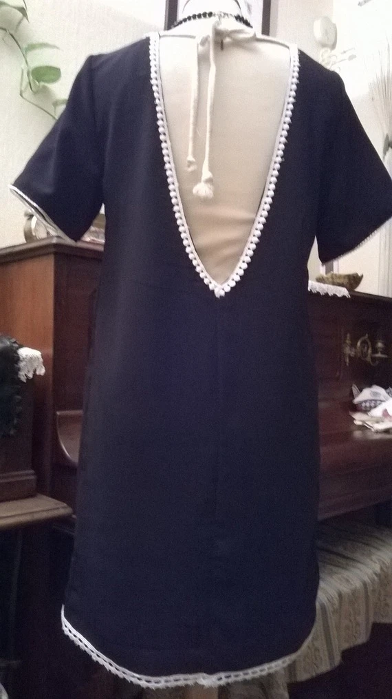 Un grand décolleté en V sur le dos avec un galon crochet blanc