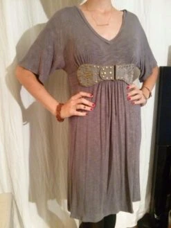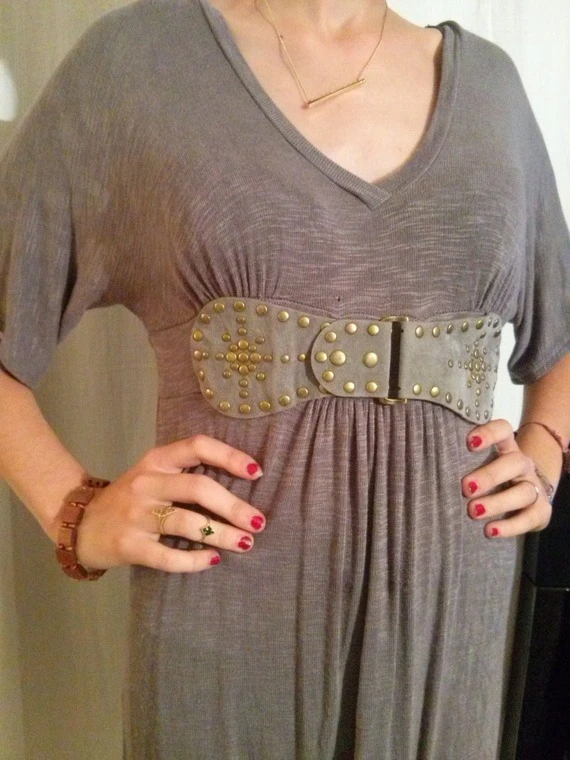 Plastron clouté en suédine couleur gris devant en dessus de la poitrine