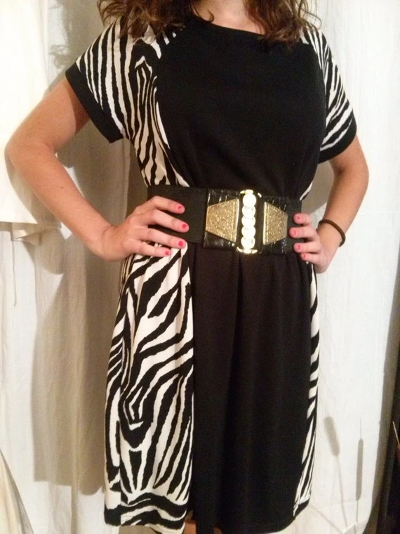 En milieu est en tissu noir et les cotés motif zébré noir et blanc