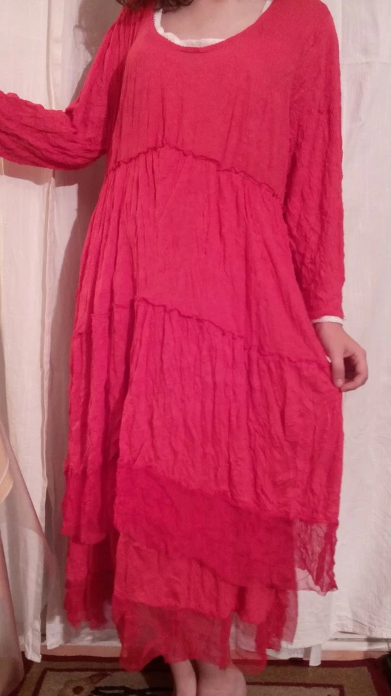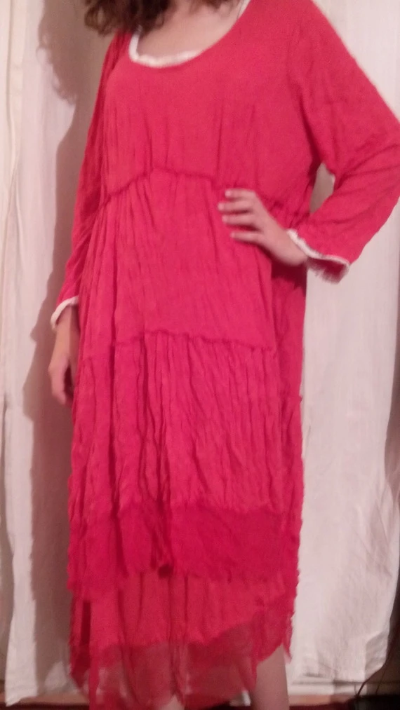 Évasé en bas avec deux niveaux de volants et la sous robe est en viscose rouge avec une bande de résille rouge