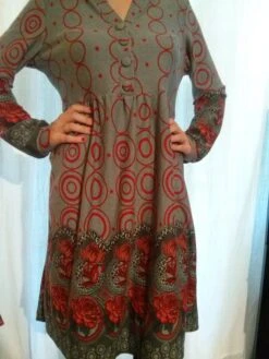 Robe manches longues imprimée gris et rouge