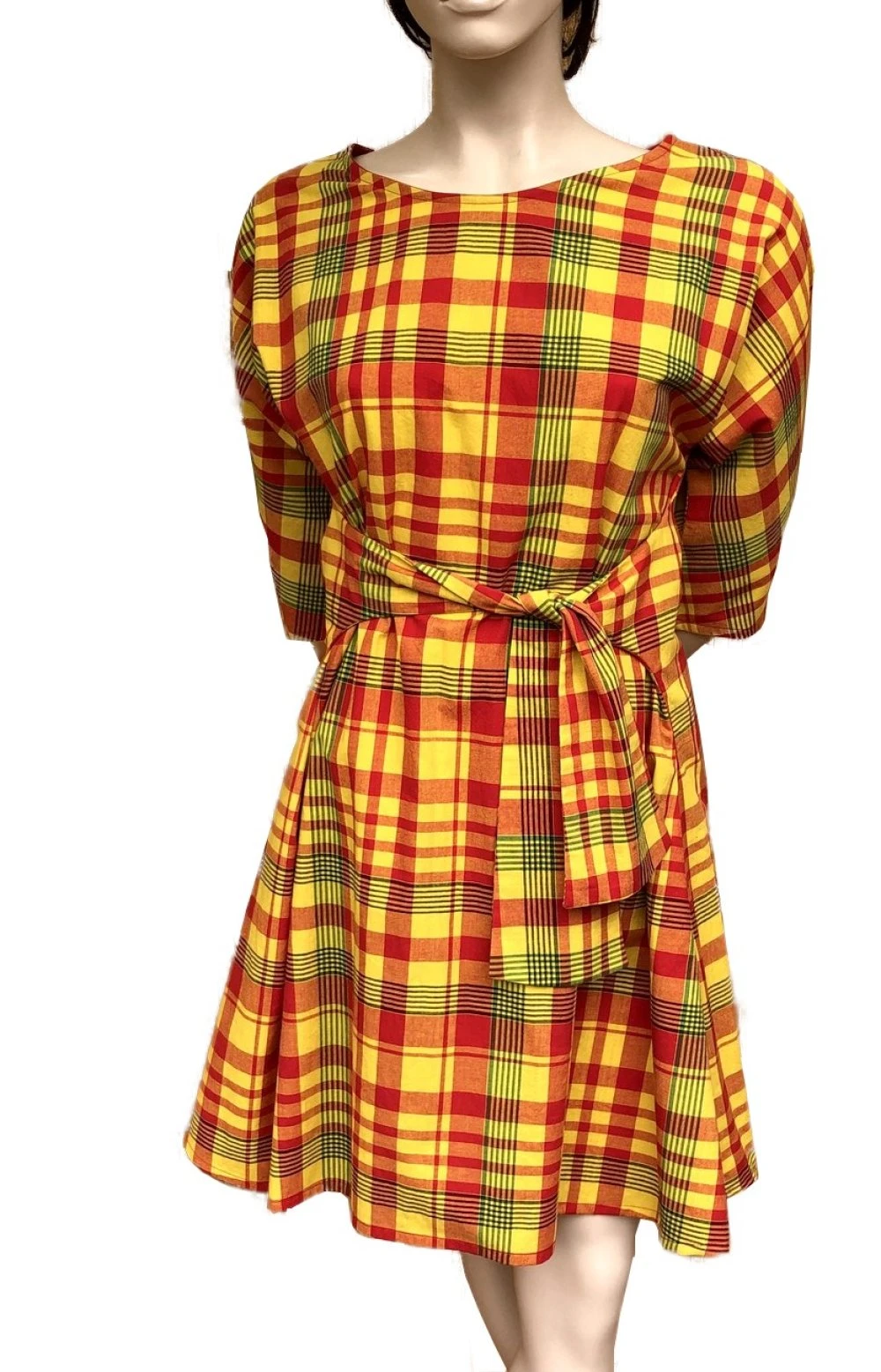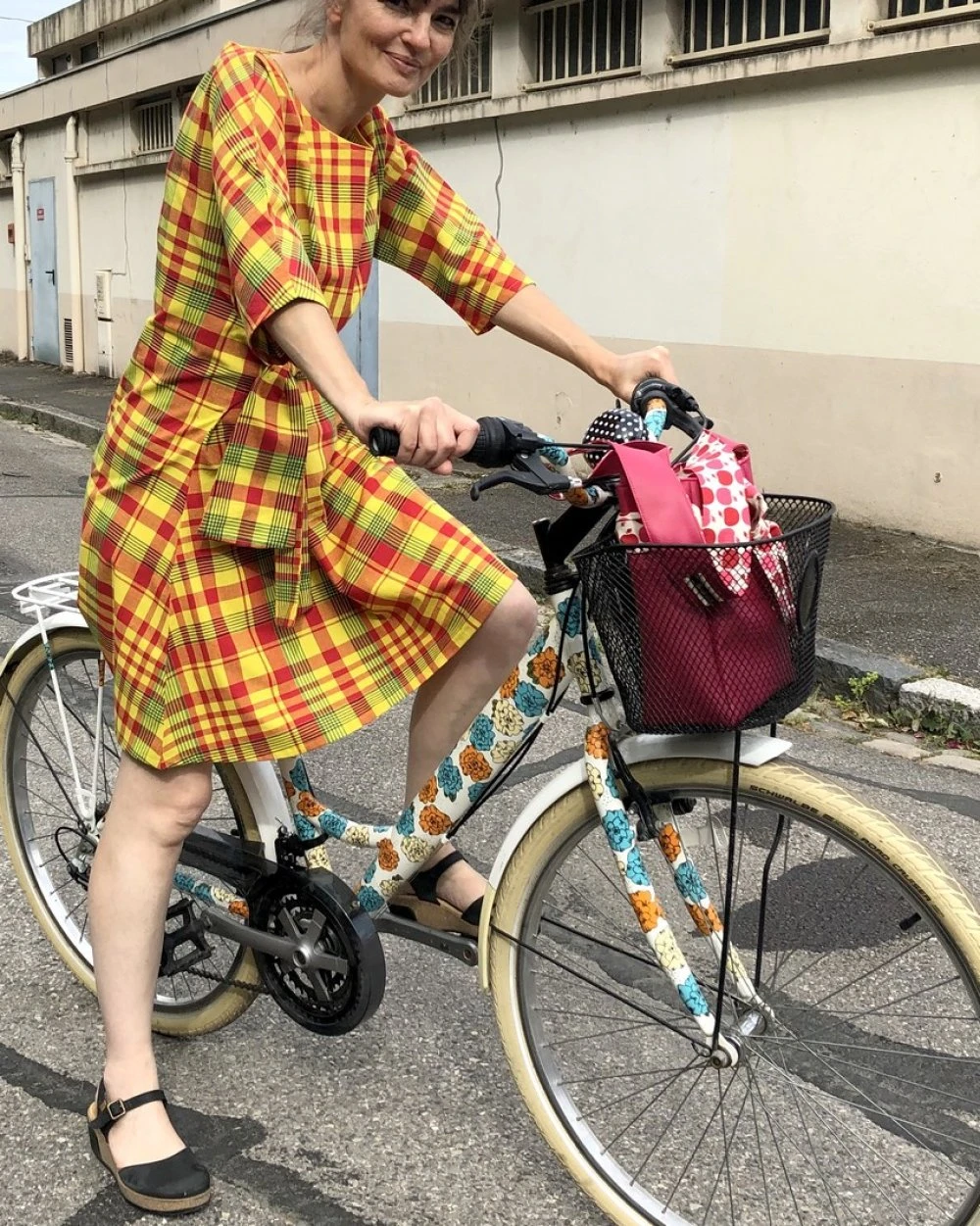 Pour ma saison de printemps-été, j’ai réadapté un modèle créé cet hiver : une robe facile à porter, ingénieuse, confortable et multi-tailles … Adepte des formes ajustées et des tailles soulignées, il fallait trouver une astuce pour retrouver l’élégance et le chic désiré pour ce modèle urbain . Comme souvent, c’est le lien qui fait la magie : noué devant ou dans le dos, le lien-ceinture crée à lui tout seul la forme de cette robe que vous porterez selon l’humeur : deux robes en une ! Le motif madras et chemises s’est imposé comme une évidence pour accompagner le gros pli qui fait le charme de cette coupe. Le coton tissé la rend encore plus douillette , et sa longueur au genou mettra en valeur vos jolies gambettes!