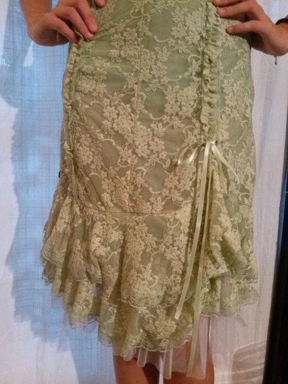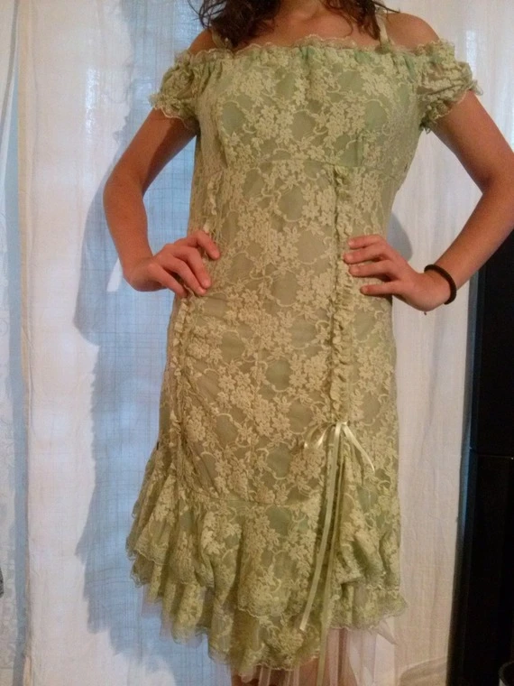 Robe mi longue à bretelle en dentelle couleur verte