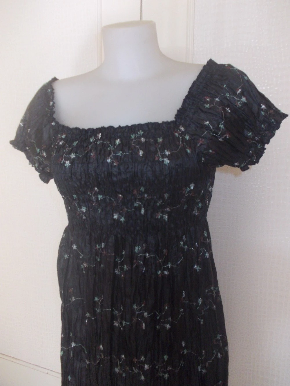 Robe bustier d’étè en soie smoké a petites fleurs marrons et argentés.