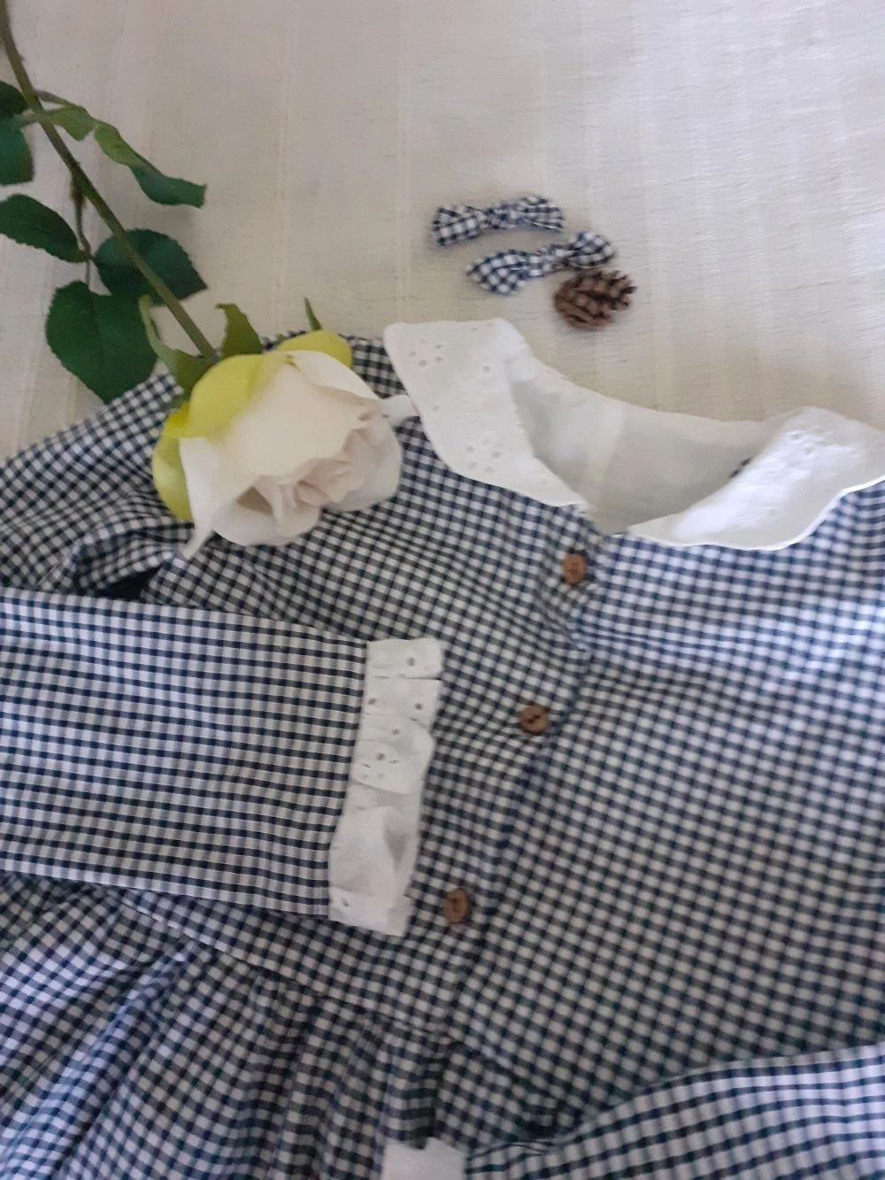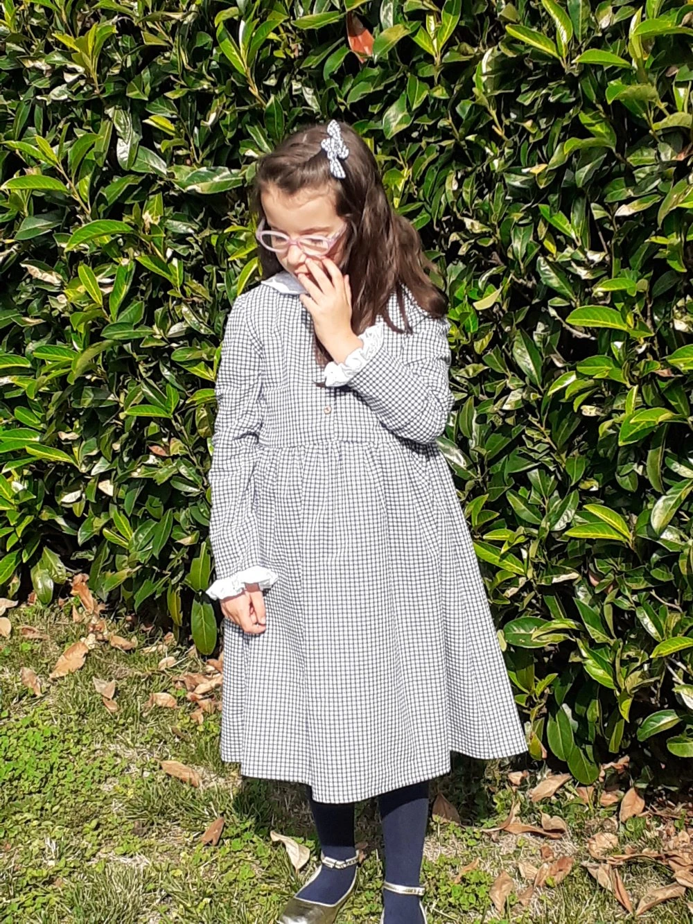 Ravissante petite robe enfant demi-saison en coton vichy bleu marine