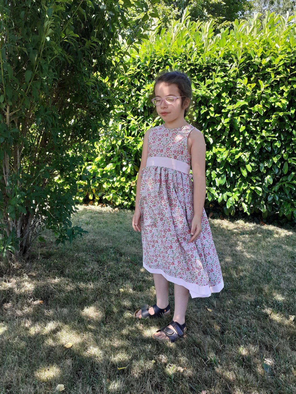 Jolie robe cérémonie pour petite fille dans un style bohème et romantique, entièrement personnalisable dans le choix de vos cotons uni ou fleuris. robe chic épurée avec une touche champêtre et vintage donné par la ceinture à nouer dans le dos.