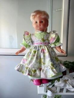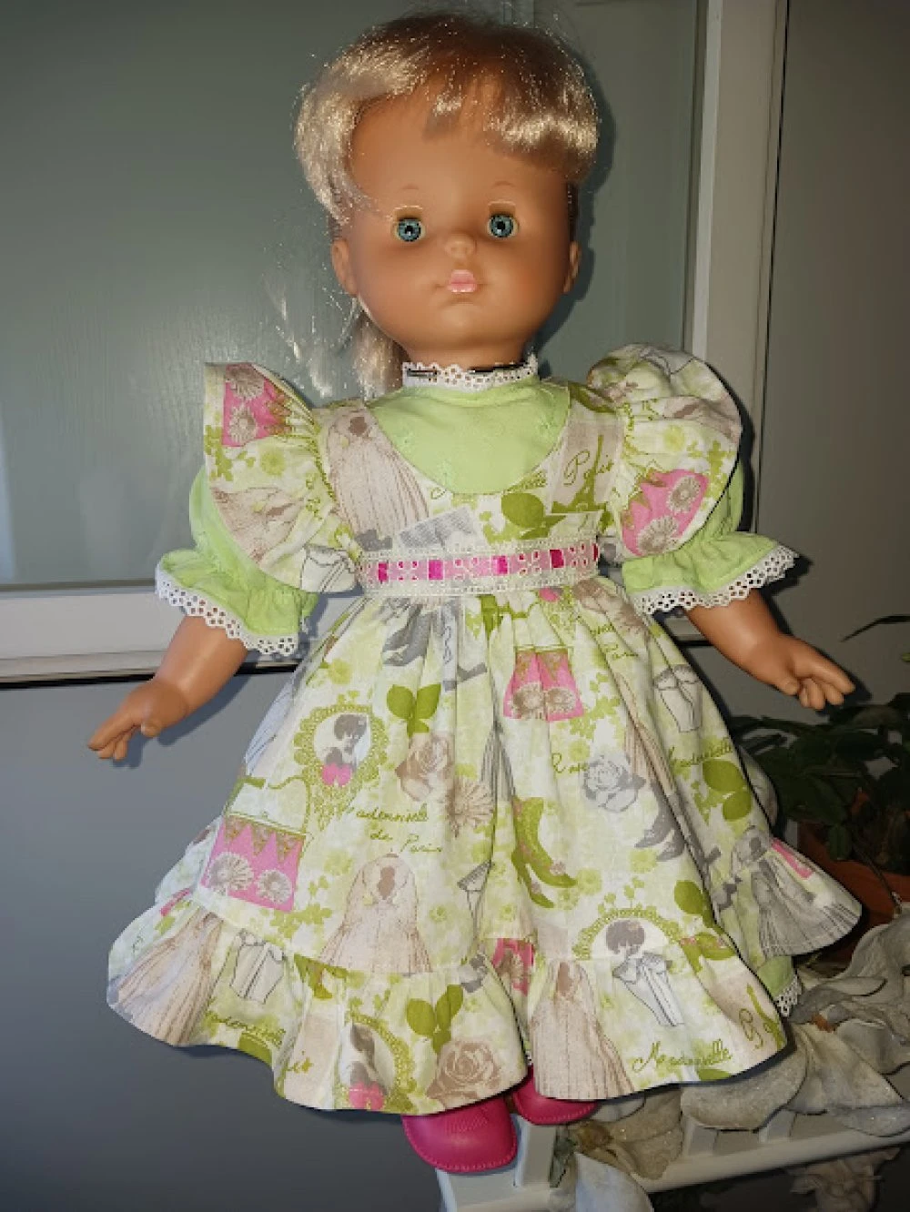 robe trapéze en broderie anglaise vert anis hauteur 32 cm