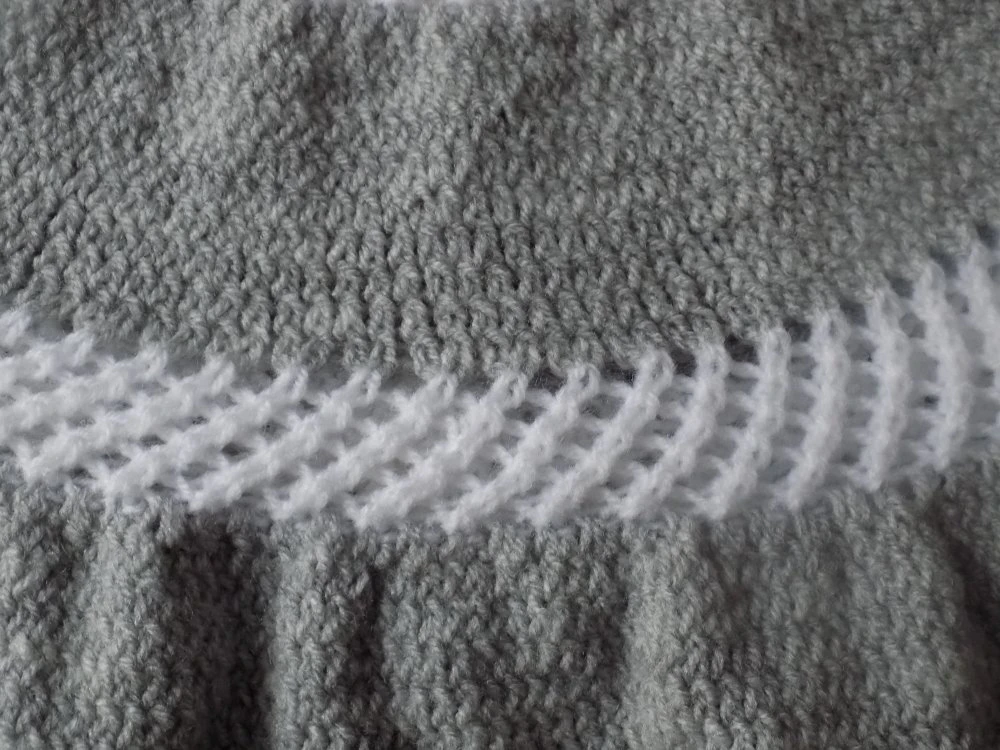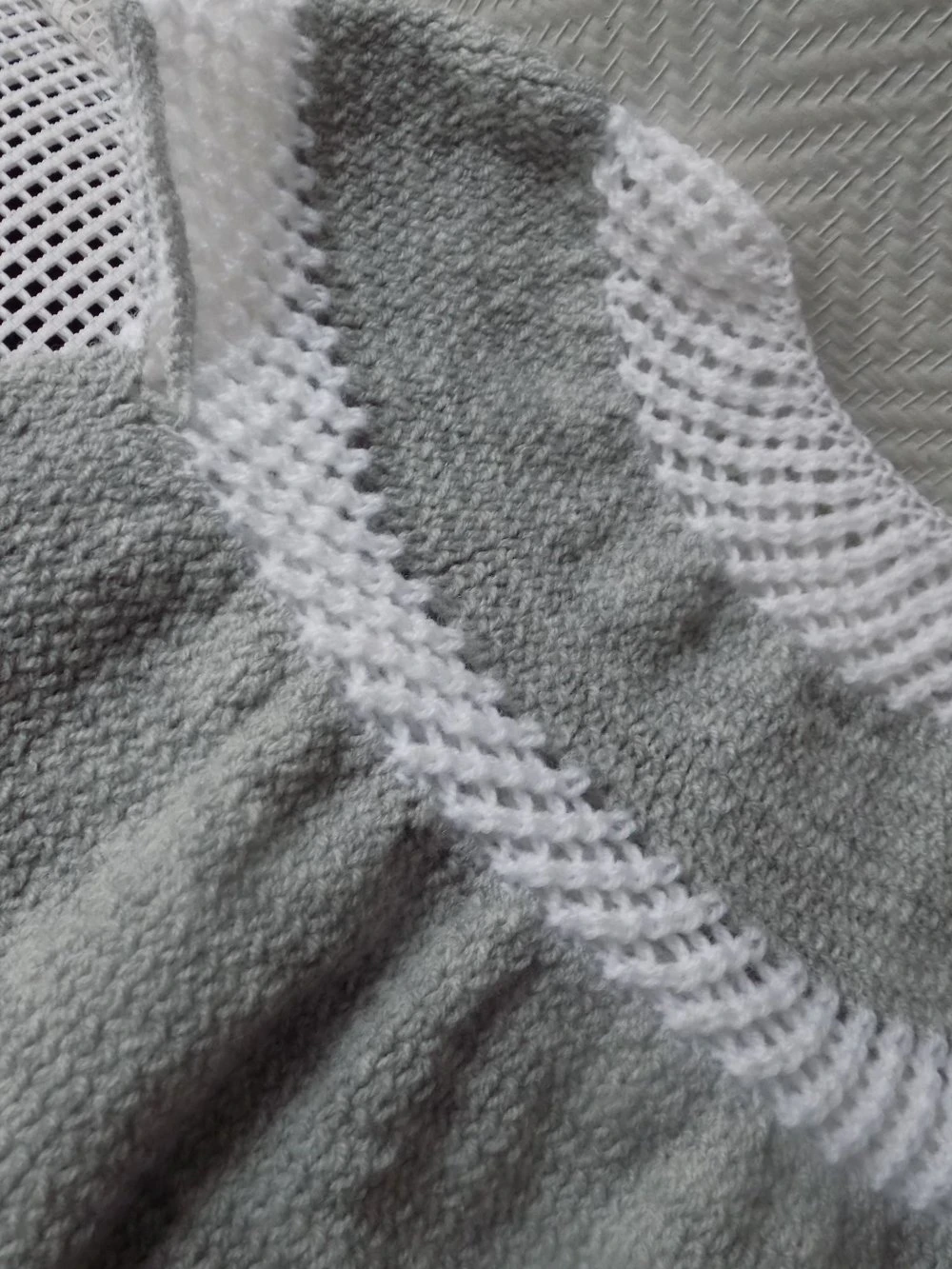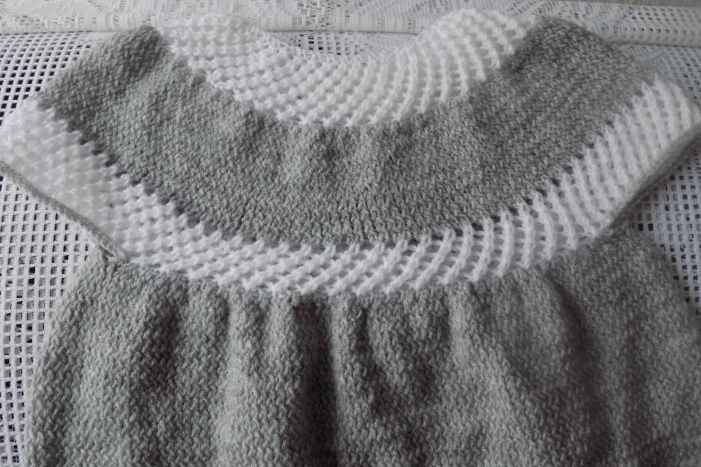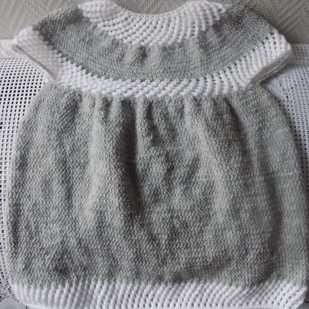 _Jolie robe pour bébé réalisée à la main au tricot en laine layette acrylique grise et laine layette acrylique blanche en taille 12 à 15 mois , selon le poids et la taille de l’enfant , pensez à vérifier les mensurations de bébé avant de commander.