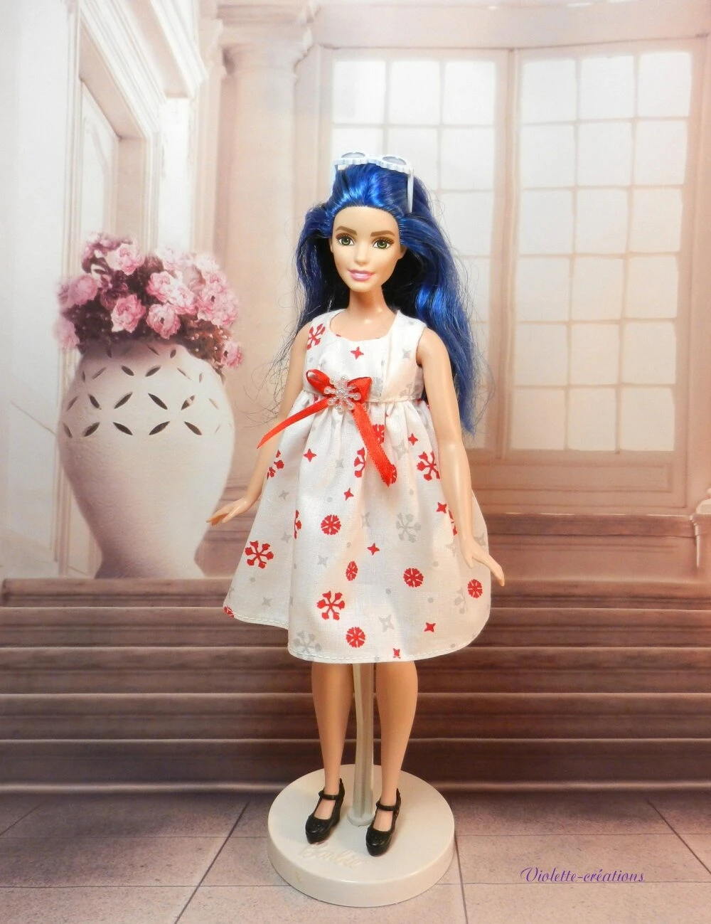 Vêtement Pour Poupée 42 Cm Robe Fond Blanc Imprimée De Petits Cadeaux Tons Bordeaux