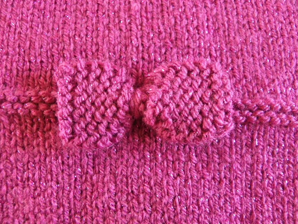 – Fait-main en laine acrylique rose brillante aux point mousse et jersey endroit